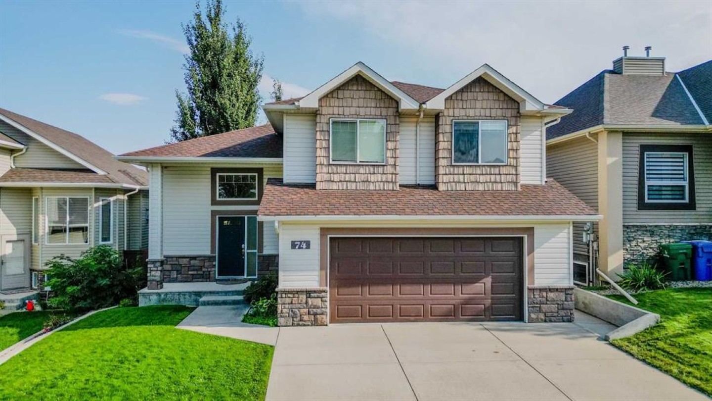 Welcome to 74 Rivermont Crescent W — a stunning, designed and custom-built bi-level tucked away on a quiet street in West Lethbridge! With 5 bedrooms plus an office, this walk-out home offers all the space your family needs and more. Overlooking peaceful green space, it’s only a couple of minutes walking up the crescent to a park featuring a stocked fishing pond and deck, a premium playground, and scenic nature trails. Coulee trails and an off-leash dog park are within walking distance too! Step inside to a bright, open-concept main floor featuring quartz countertops, updated flooring, skylight, and oversized windows that flood the space with natural light. The spacious primary suite comes complete with a walk-in closet and a 4-piece ensuite with double sinks and a relaxing jetted tub. The fully finished walk-out basement is filled with natural light and includes extra bedrooms, a full bathroom, and an office that could serve as a 6th bedroom. A focal gas fireplace and a ready hook-up for a projector make it the perfect spot for cozy family movie nights. Outside, enjoy a large furnished patio with an outdoor propane fireplace and a ready-to-use hot tub that all stay with the home. The fenced, professionally landscaped backyard showcases mature trees, a perennial garden, and underground sprinklers. Add in two beautiful fountains, central A/C, and a double attached garage, and this home truly has it all! Don’t miss your chance to own this incredible property in one of West Lethbridge’s most desirable neighborhoods!