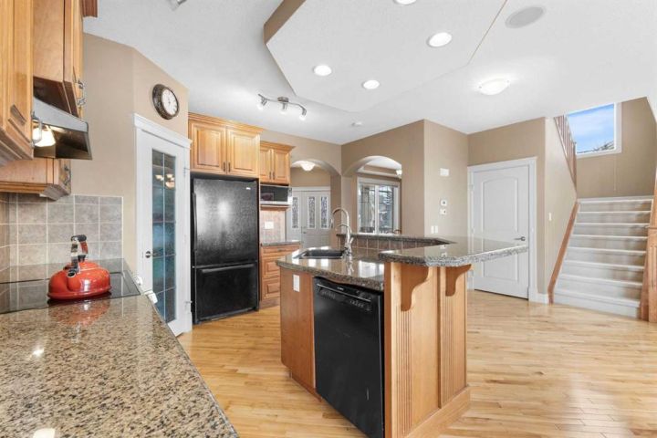 Very rarely do you find a home with so many exceptional features – FILLED WITH NATURAL LIGHT – The Great Room, Kitchen and Nook have 9-foot ceilings and are surrounded by 7 east, south and west-facing knee-to-ceiling windows – DIRECT MOUNTAIN VIEWS – Captivating vistas of the Rockies from the deck, main & 2nd floors – SOUTH-FACING WALKOUT BASEMENT – 9-foot ceilings professionally developed – GIANT 3 CAR GARAGE – Loads of space for your vehicles, bikes and storage. -- This attractive and appealing 3 + 1 bedroom home is nestled in the incomparable community of Discovery Ridge. In a short stroll you’re in GRIFFITH WOODS – the giant 220-acre natural park that’s filled with bird songs, walking trails, river streams, stepping stones, crystal springs and towering forests. When you choose Discovery, NATURE IS YOUR NEIGHBOUR! -- The BRIGHT & WELCOMING MAIN FLOOR of this beautiful home features the airy and spacious Great Room with gas burning fireplace, sunny nook and open kitchen with rich cherry wood cabinetry and generous-sized island. You’ll enjoy the elegant dining room with a two-tiered ceiling and decorative arches. There is also a generous sized foyer, private powder room, and large mud room with a bench, built-in closets and plenty of storage space. -- 3 BEDROOMS, BONUS ROOM & LAUNDRY UPSTAIRS – The spacious Master has plenty of room for a king-sized bedroom suite – and has south and west-facing windows to see the morning sun on the mountains. The Master Ensuite is a true oasis with a huge soaker tub for two, steam shower, dual sinks, private water closet and skylight. Upstairs there are two additional quiet and comfortable bedrooms and 4-piece bath. The peaceful and serene BONUS ROOM is the perfect place to hang out, watch a movie and gaze at the rugged beauty of the Rockies. Topping off the upstairs is the extremely convenient Laundry station – no need to drag all your sheets and clothes up and down the stairs. -- The BRIGHT AND SPACIOUS WALKOUT BASEMENT features 9-foot ceilings, radiant in-floor heating, and huge west and south-facing windows in the large open area that covers the entire width of the house. Downstairs there is also a 4th bedroom, 4-piece bath, large Storage room, and Utility room with furnace and dual hot water tanks. The home also has Central Air Conditioning. -- PRIVATE, SUN-DRENCHED BACKYARD -- The BACK DECK has commanding views of the neighbourhood park, rolling foothills, the majesty of the Rockies and the vibrant Alberta sky. It’s a perfect spot for entertaining or just enjoying beautiful summer evenings. Downstairs, the Walkout door opens onto a private covered cobblestone patio. Once outside, you’ll love the sunny, south-facing, professionally landscaped back and side yards with mature trees and an attractive variety of perennials. THIS HOME HAS SO MUCH TO OFFER. BOOK YOUR SHOWING TODAY.