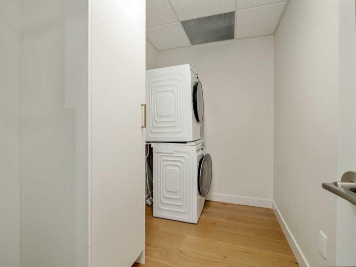 Built-In Refrigerator, Convection Oven, Induction Cooktop, Microwave, Range Hood, Washer/Dryer Stacked