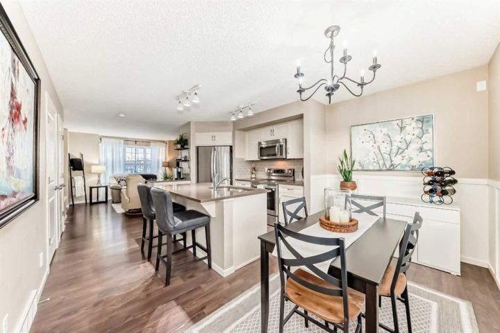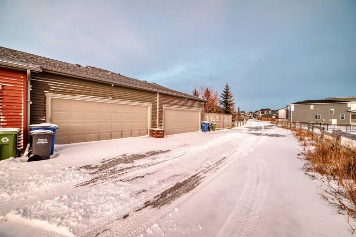 Discover the opportunity to own a stunning home in one of Cochrane’s most sought-after communities of Sunset Ridge! This beautifully designed two-storey townhome offers 3 bedrooms and 3.5 bathrooms, a fully finished basement, and a double detached insulated garage. From the moment you step inside, the home feels bright, warm, and welcoming. The main floor features a comfortable living area and a well-appointed kitchen complete with quartz countertops, stainless steel appliances, and a spacious island ideal for entertaining. A stylish mudroom provides ample space and convenient access from the garage. Step outside to a private deck, plus a lower patio offering additional outdoor living space. Upstairs, you’ll find two generous primary suites, each boasting its own walk-in closet and full four-piece ensuite for ultimate comfort and privacy. The fully developed basement includes a large recreation room, an additional four-piece bathroom, and a third bedroom. Ideally located just steps from Ranchview School and surrounded by extensive walking and biking paths, this home offers easy access to everything Cochrane has to offer.