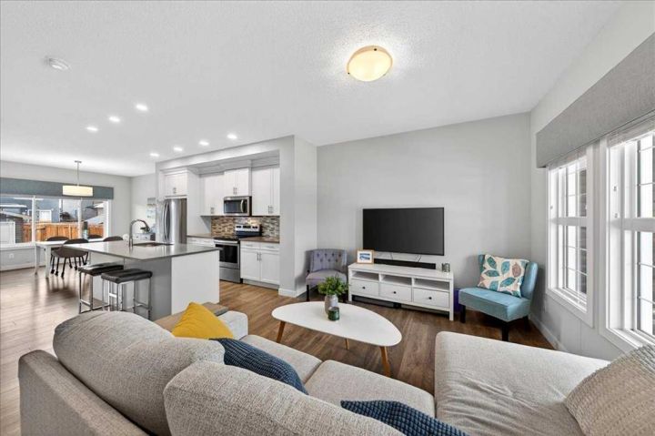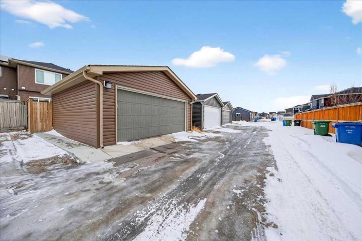 OPPORTUNITY CALLS - EVERYTHING YOU NEED IN THE DESIRABLE COMMUNITY OF EVANSTON - This amazingly cared for home is ready for you the moment you step inside — settled, comfortable, and confidently put together by owners who’ve treated it well from day one. The bright and open main floor sets the tone right away. Light moves easily through the home, surfaces are clear, and the details do their work in the background. Simple window coverings keep things crisp, while box valances on the main level add a layer of warmth and finish — a small design choice that makes the space feel complete. The kitchen, dining, and living areas flow naturally, giving everyday life room to breathe and gatherings space to unfold without effort. The open concept gives you everything you need at your fingertips. Upstairs, a large and spacious PRIMARY BEDROOM WITH A DEDICATED, OVERSIZED ENSUITE, two secondary bedrooms, and laundry placed where it actually gets used. The ensuite itself is finished with QUARTZ COUNTERTOPS, a GLASS SHOWER, and a DUAL VANITY — UPGRADED, practical, and done right. Outdoor living extends the home in both directions. The east-facing, FULL-WIDTH FRONT PORCH catches the morning sun and sets a welcoming first impression, while the WEST-FACING BACKYARD takes over later in the day. Fully fenced and sodded, with a rear deck, concrete hot tub pad and a DOUBLE DETACHED GARAGE WITH ADDITIONAL home access from the alley. This is a yard that works hard without asking much back — space for kids, casual BBQs, or evenings that stretch a little longer. The location quietly does a lot for daily life. ONE BLOCK AWAY, GREENSPACE WITH WALKING PATHS and a playground becomes part of routine, not a planned outing. Schools are close enough for real independence as kids grow, and pathways thread through the community, connecting to LARGER GREEN AREAS with lookout points, naturalized sections, and room to roam. Shops, services, and everyday conveniences are minutes away, and STONEY TRAIL IS CLOSE AT HAND — easy access without living in its shadow. CLEAN, COMPOSED, AND CLEARLY WELL CARED FOR. The next step isn’t overthinking it — it’s seeing it. Schedule a showing and let the house speak for itself.