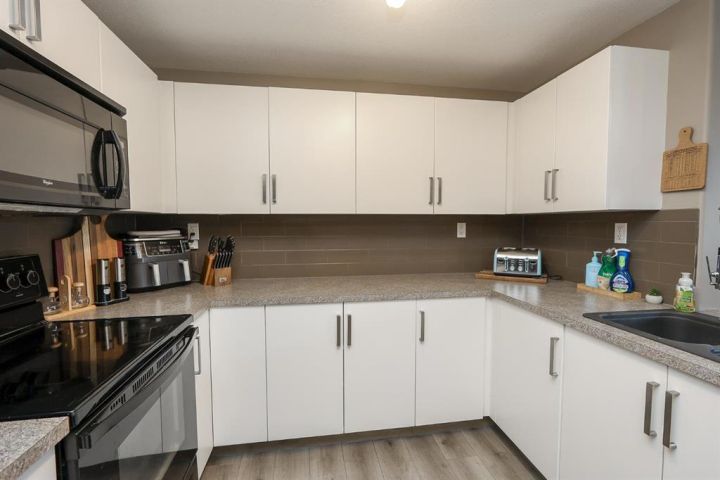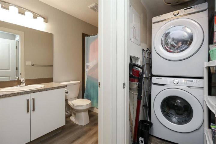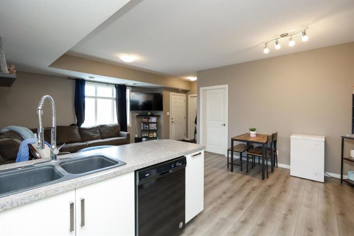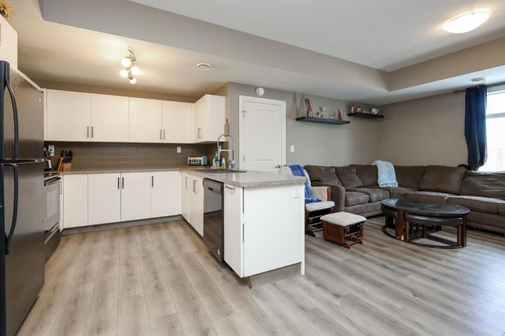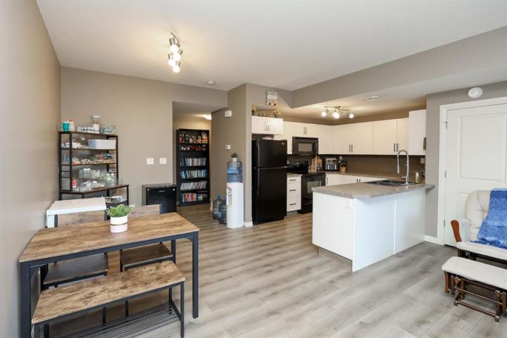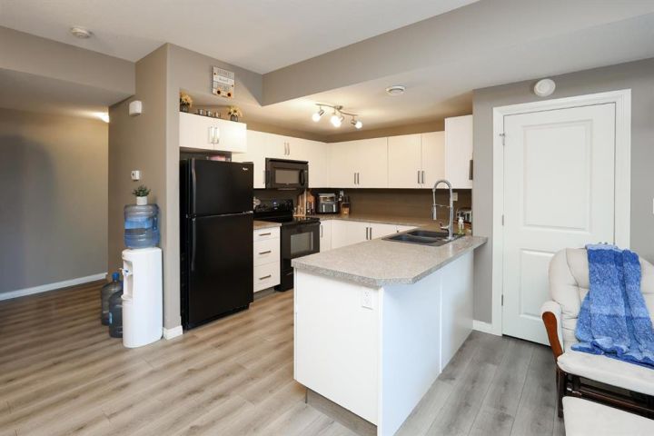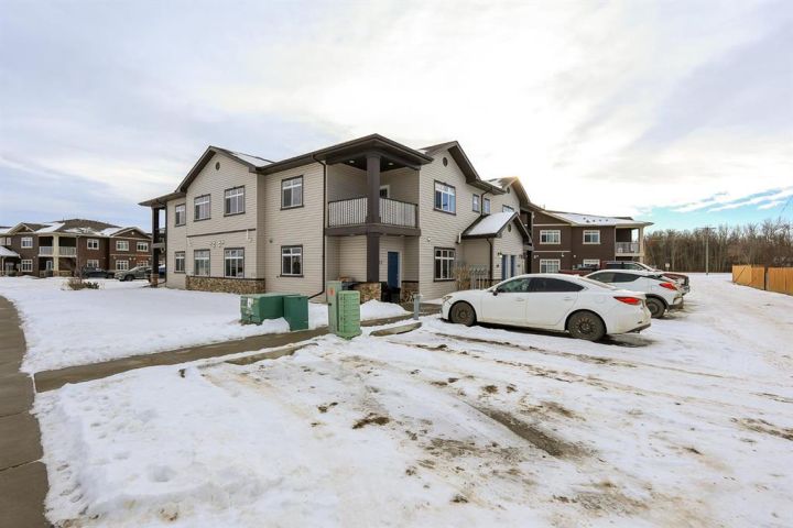 2 BEDROOM, 2 BATHROOM MAIN FLOOR CONDO ~ WEST FACING ~ LOW MAINTENANCE LIVING ~ Covered front entry and patio area welcome you to this move in ready home ~ Spacious foyer with a large coat closet opens to the open concept main living space with large west facing window and vinyl plank flooring ~ The u-shaped kitchen offers a functional layout and features ample cabinet and counter space, including an eating bar, full tile backsplash, and black appliances ~ easily host gathering in the dining room ~ Just off the kitchen is a storage/flex room ~ The primary bedroom can easily accommodate a king size bed plus multiple pieces of furniture, has a walk in closet with built in organizers, and a 4 piece ensuite ~ Second bedroom is also a generous size with ample closet space ~ Conveniently located laundry is next to the 4 piece main bathroom ~ Low monthly condo fees are $365.54 and include; exterior insurance, maintenance grounds, parking, professional management, reserve fund contributions, sewer, snow removal, trash and water ~ 2 Powered parking stalls right in front of the main level door offer easy access ~ Located just minutes south of Red Deer and Gasoline Alley (Walmart, Costco, Farmer's Market & tons more shopping and amenities), close to Penhold (schools with bus service, shopping), with quick access to highway 2 ~ This community offers beautiful walking trails through natural wetlands, along with numerous parks and playgrounds ~ Enjoy the serenity of a country setting while maintaining every day convenience.