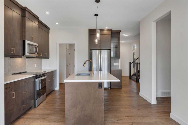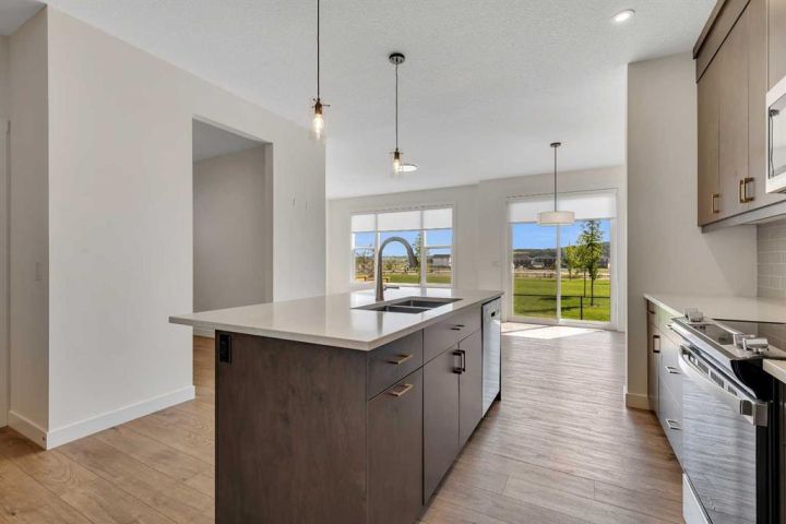 MOTIVATED SELLER! Welcome to this modern, move-in-ready 4-bedroom, 3.5-bathroom home with a LEGAL RENTABLE BASEMENT SUITE and a main-floor office, perfectly situated in the highly sought-after master-planned community of Pine Creek. Backing directly onto a park and playground, this property features a sun-filled south-facing backyard—the ideal combination of everyday convenience and a serene, nature-filled setting. Boasting over 3,000 sq. ft. of developed living space, the open-concept main floor seamlessly connects the chef’s kitchen, dining, and living areas. The kitchen impresses with full-height maple cabinetry, quartz countertops, stainless steel appliances, and a walk-through pantry leading to a mudroom with garage access. A versatile flex room makes the perfect home office, while luxury vinyl plank flooring provides both style and durability throughout. Upstairs, the primary suite offers a spacious walk-in closet and a spa-inspired 5-piece ensuite featuring dual sinks, a soaker tub, and a walk-in shower. A central bonus room, two additional bedrooms, a full bath, and convenient upper-floor laundry complete this level. The fully self-contained legal basement suite includes a private side entrance, 1 bedroom, 1 bathroom, a full kitchen, living/dining area, in-suite laundry, and its own independent mechanical system—ideal for extended family or supplemental rental income. Built with comfort and efficiency in mind, this home features triple-pane windows, a high-efficiency furnace, and the peace of mind of Alberta New Home Warranty. Enjoy a prime location just steps from three playgrounds, surrounded by preserved natural areas, and minutes to five golf courses, Fish Creek Park, and the Township Shopping Centre (only 4 minutes away). Shawnessy and Millrise shopping, dining, and the VIP Cinema are also nearby, with a future state-of-the-art recreation centre planned for the community. Don’t miss your chance to own this thoughtfully designed home in one of Calgary’s most desirable communities. Contact your favourite REALTOR® today to book a private showing!