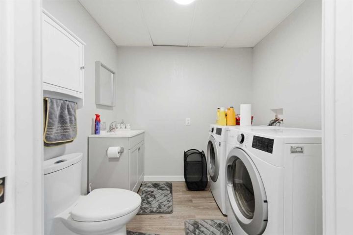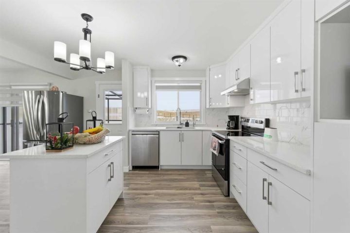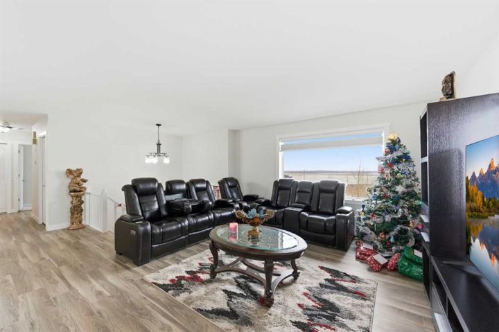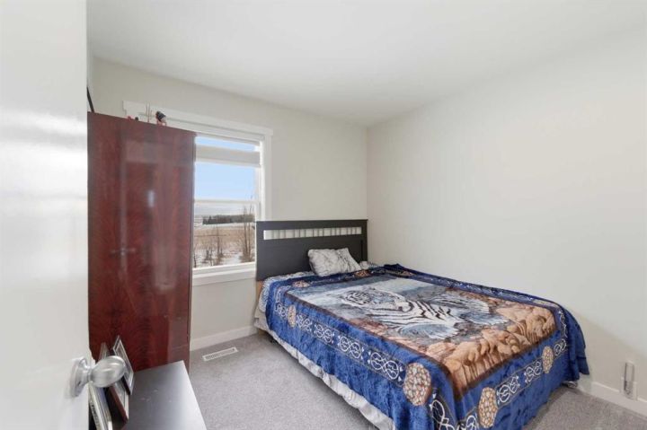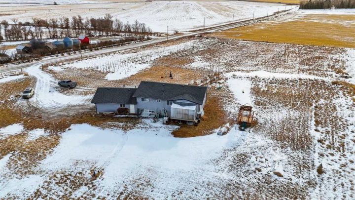 This beautifully updated 4-bedroom bi-level home sits on 4 peaceful acres, offering the perfect balance of rural living and modern comfort. Located just 35 minutes from Strathmore along the Trans-Canada Highway and close to Cluny for everyday amenities, the property also benefits from bus service to Wheatland Crossing K-12 School. With over 2,000 sq ft of developed living space, the home rests on a new 2018 concrete foundation and has seen extensive upgrades. In 2018, the property received a new well with a 20 GPM rating, a 1200-gallon septic tank and field, a fully renovated 4-piece bathroom, a new roof, a 100A electrical panel, new plumbing throughout, new exterior doors and windows, a new pressure tank and hot water tank, and fresh paint. Improvements in 2021 and 2022 include central air conditioning, a new furnace heat exchanger, a gas heater for the garage, insulated garage doors, new laundry appliances, a new fridge and dishwasher, and updated countertops and backsplash. Recent improvements in 2025 include brand new kitchen cabinets with quartz countertops and a brand new electric range, new paint on walls and ceilings, new lights, new blinds, new flooring,new water treatment system and water softener and a sunroom. The main floor is bright and inviting, with an open living and dining area filled with natural light from north, west, and southeast-facing windows that frame sweeping prairie views. The elegant kitchen is ideal for cooking and entertaining, with the back deck just steps away. Three well-sized bedrooms, a full 4-piece bathroom, and a private ensuite in the primary bedroom complete the main level.The fully developed basement continues the home’s thoughtful updates, featuring newer carpet, a spacious fourth bedroom, a 2-piece bathroom, and a hidden den tucked behind a moving built-in bookshelf. This secret space is perfect for a cozy theatre room, a quiet office, or secure storage. From the basement, you can access the oversized 29' x 32' heated garage, large enough for two full-sized vehicles with room to spare. This property is an exceptional opportunity for anyone seeking a homestead with space, privacy, and the freedom to create the lifestyle they’ve been dreaming of, all within an easy drive of Strathmore or Calgary.