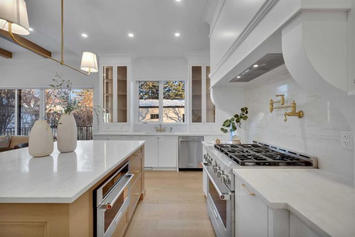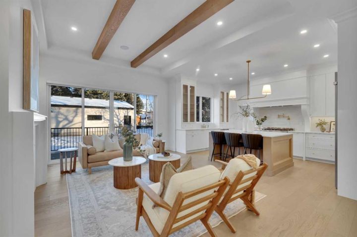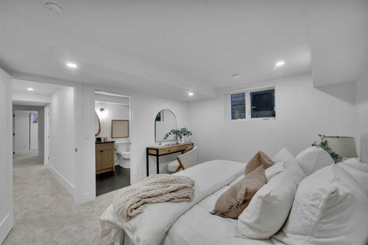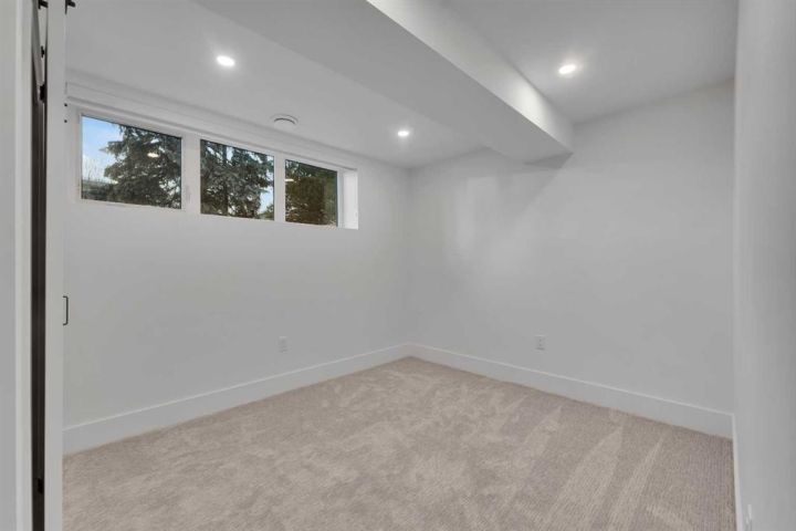 Welcome to this exceptionally renovated luxury bungalow, situated on a massive lot just steps from Confederation Park. Thoughtfully redesigned from top to bottom, this home blends timeless elegance with modern functionality, offering an unmatched level of quality and detail throughout. The main level impresses with 10-foot ceilings, 8-foot doors, and a striking 42” x 8’ custom entry door, creating an immediate sense of scale and sophistication. 7.5” engineered oak flooring, oak beams, and a beautifully finished coffered ceiling office add warmth and architectural character. The kitchen is equipped with custom appliances including a statement 48” refrigerator, enhanced by under- and in-cabinet LED lighting for both style and practicality. The spa-inspired ensuite features heated floors and a luxurious steam shower, while the main-level washroom showcases marble flooring, a custom vanity, and designer finishes. Custom closets, blinds throughout, and clean, casing-free windows complete the refined interior. This home is equally impressive behind the scenes with a water-on-demand system, AC rough-in, Progressive New Home Warranty, and a 200-amp electrical combo servicing both the home and rear garage. Car enthusiasts and hobbyists will appreciate the oversized heated front single garage, epoxy flooring in both garages, a triple heated rear garage, and even a dog wash station in the front garage. Outdoor living is elevated with a BBQ gas line on the deck and fully completed landscaping, including custom concrete flower beds in both the front and backyard. This is a rare opportunity to own a fully custom, substantially renovated bungalow on a premium lot in one of the city’s most desirable inner-city locations, steps to green space, walking paths, shopping and everything Confederation Park has to offer.