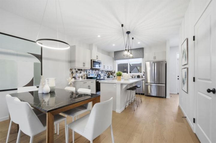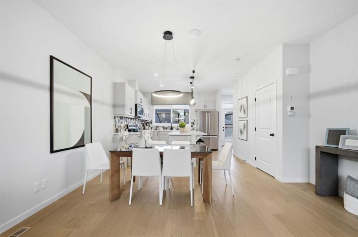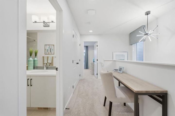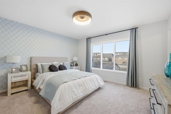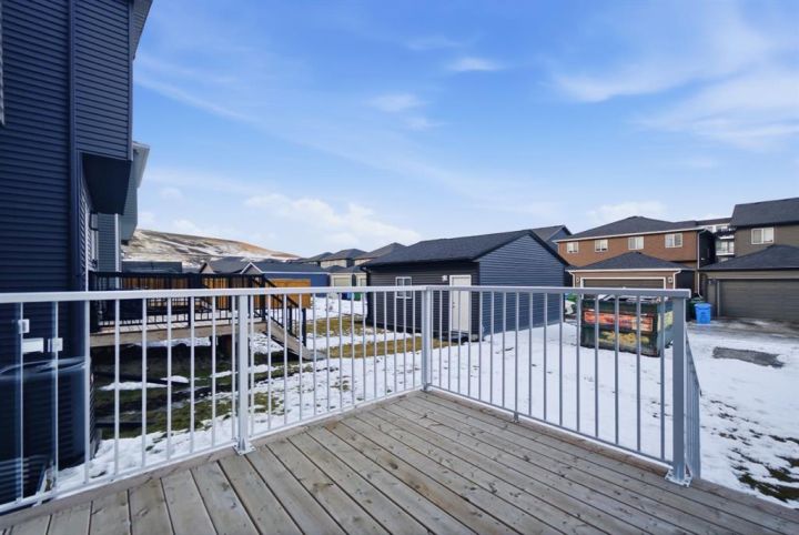 Welcome to this immaculate showhome in the highly desirable Wolf Willow community! This pristine 3-bedroom, 2.5-bathroom home has never been lived in and comes fully furnished with designer show home furniture, curated art pieces, and elegant window coverings all included. Boasting over $45,000 in builder upgrades with tasteful, high-end finishes throughout, this home features air conditioning for year-round comfort, professionally landscaped yard with mature plantings, and a beautiful deck perfect for entertaining. Every room showcases thoughtfully designed accent walls adding character and style, while a convenient office desk nook on the second-floor hallway maximizes every inch of space. Ideally situated steps away from the dog park, this home is perfect for pet owners and families alike. Wolf Willow has long been cherished for its natural beauty, diverse fish and wildlife, and abundant recreational opportunities. With its contemporary design, numerous amenities, and strong connection to the river, Wolf Willow brings the lifestyle and beauty of the Bow River Valley right to your doorstep. This is a rare opportunity to own a designer showhome with everything included - simply move in and start living the Wolf Willow lifestyle!