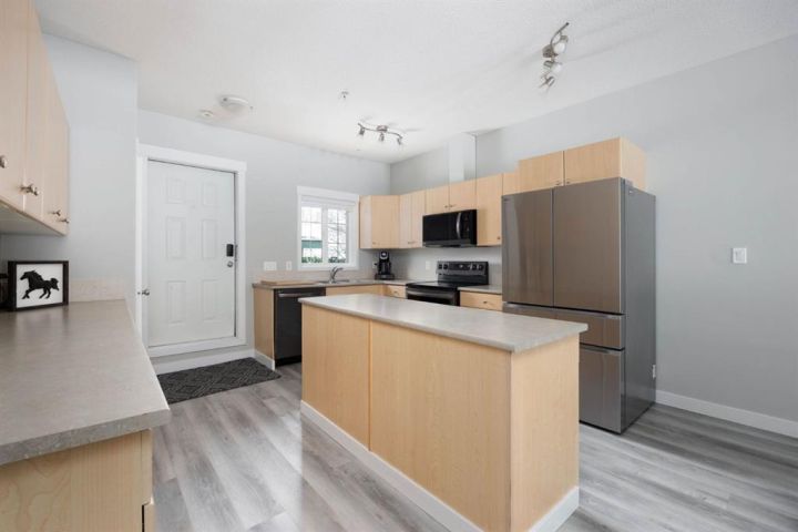 Welcome to this beautifully renovated, move-in ready corner townhome located in the highly sought-after community of Timberlea. Thoughtfully updated from top to bottom, this unit showcases BRAND NEW vinyl plank flooring throughout, CUSTOM stairs with freshly painted risers, NEW trim and baseboards, and a clean, FRESHLY paint that gives the home a bright and polished feel. The home offers two large bedrooms, including a spacious primary suite complete with a private ensuite and its own balcony. The functional layout is ideal for both homeowners and investors, offering comfortable living spaces and excellent flow. The kitchen is equipped with appliances replaced in 2023, while everyday convenience is elevated with a brand-new washer and dryer installed in 2025. One of the standout features is the heated underground garage located directly beneath the unit, complete with additional storage—perfect for Fort McMurray winters. This Unit also features an above ground extra wide parking stall that has ample room for parking if needed. Condo fees provide outstanding value, covering heat, Gas, water, sewer, Garbage and insurance. Residents also enjoy access to an on-site gym and sauna, enhancing the low-maintenance lifestyle this property offers. As a desirable corner unit. Located close to shopping, schools, parks, and transit, this turnkey townhome presents an excellent opportunity to own a stylish, worry-free home in one of Timberlea’s most convenient locations. CALL TODAY FOR YOUR OWN PERSONAL SHOWING