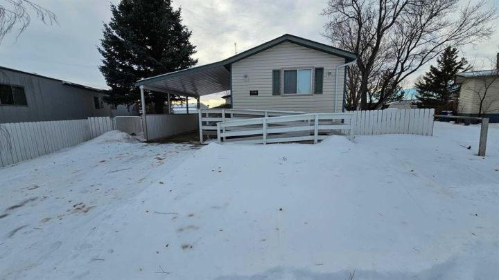 Welcome to Coronation, this beautiful three bedroom two bathroom modular home , sits on a fully fenced owned lot. This 1216 sq ft home has been well kept in the many years by the owners, with upgraded shingles in the past 5 years, vinyl windows, vinyl plank flooring and linoleum, painting, central ac and newer furnace.The interior shows the pride of ownership and will be a lovely home for years to come. The home also has a covered deck with a walkway between the two entrances, along with a front ramp making the transition to the house easier. Out back is the storage shed and in the front is the lovely carport just perfect to keep the elements off the vehicle. The modular is fully skirted and has been trouble free for years with maintenance as a priority.