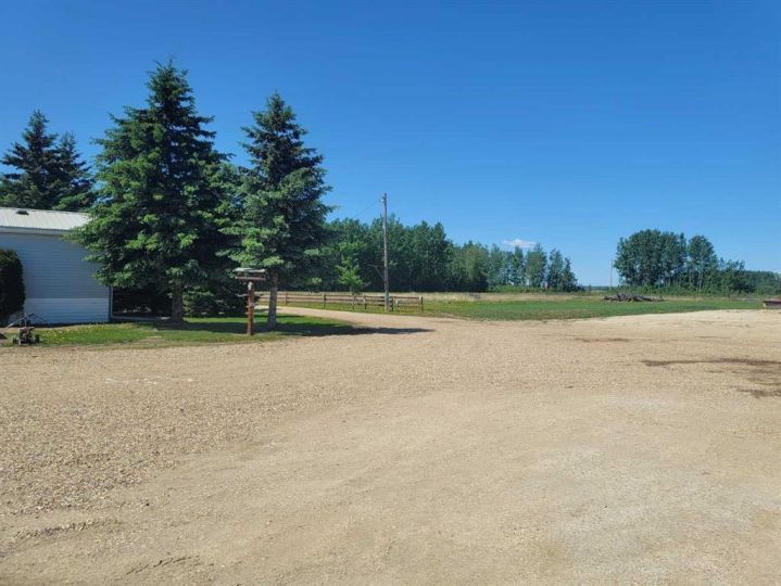 Acreage for Sale! So you want Affordable Country living but also want to be close to all amenities and minimal gravel well this property is for you! Featuring 1200sq/ft this Mobile Home (2000) with 2 bedrooms, 4pc bathroom, main floor laundry and a spacious entrance, has been extensively renovated. With new flooring, paint, trim, lighting and a full bathroom renovation incl subway tile tub surround and new fixtures makes this home move in ready! The double attached heated garage is there for all your storage needs as well as multiple outbuildings including a 16'×24' workshop and storage shed all in fantastic condition. Located on 5.66 acres serviced with municipal water, natural gas and power. Very nicely landscaped with plenty of spruce trees surrounding the home and a 16' × 21' deck to enjoy all of it. Fenced and cross-fenced with a winding driveway and lots of room to run. This great buy is located within a 5min drive from town.