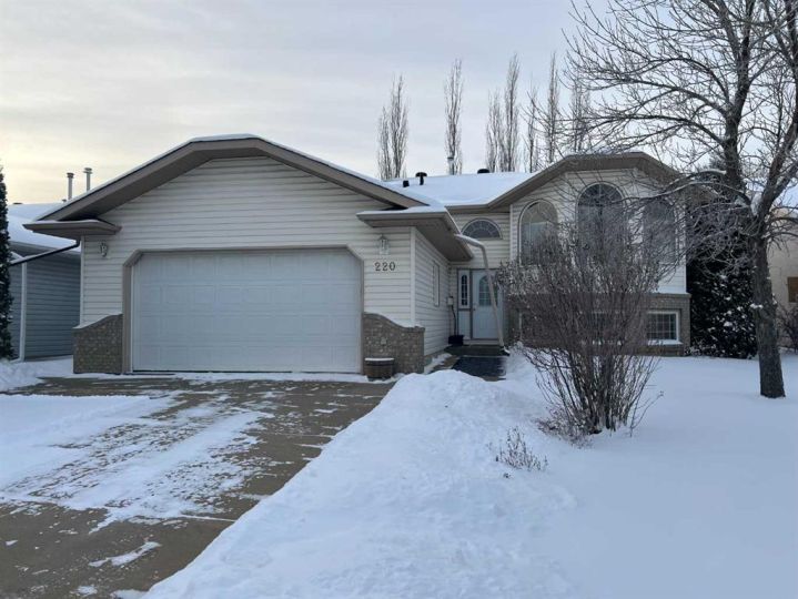 Welcome to 220 Boisvert Place! This beautifully maintained 4-bedroom bi-level is ideally located within walking distance to schools, shopping, and recreational amenities, including the popular Birchwood Trails. Step inside to a spacious foyer offering direct access to the double attached garage. The main floor features a bright, sun-filled living room where large windows highlight the hardwood flooring. A gas fireplace with elegant woodwork and marble tile surround adds a timeless touch of class. The living room is open into the dining area, which invite you through glass doors to a stunning two-tiered deck... an oasis-like space perfect for entertaining or relaxing with family. The private backyard is adorned by mature trees and shrubs, creating a peaceful outdoor retreat. The kitchen offers oak cabinetry, a large window overlooking the backyard, and a convenient sit-up island with added storage; ideal for the family chef and helpers alike. Also on the main floor is the generously sized primary bedroom, complete with a walk-in closet and a full 4-piece ensuite featuring a jetted tub. Two additional bedrooms with large backyard-facing windows complete the upper level. Downstairs, the impressive family and recreation rooms provide ample space for a home theatre, pool table, and gatherings (even the big ones), all with a second cozy gas fireplace. The lower level also includes a full bathroom, a fourth bedroom with walk-in closet, and a large laundry room with laundry sink and impressive storage options. Numerous updates over the years include shingle replacement, new hot water tank, new back deck and added A/C. This move-in-ready home offers immediate occupancy. Come discover Timberlea and all that Boisvert Place has to offer!