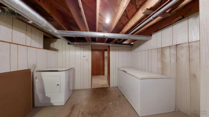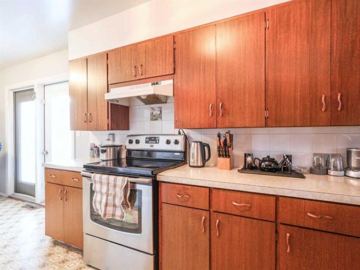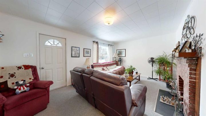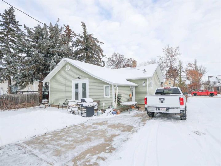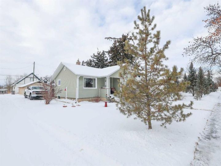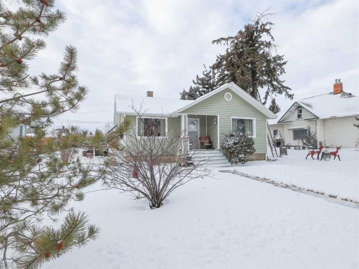 Located just one block off Main Street in the Town of Stettler, this well-situated four-bedroom home offers exceptional convenience, with shopping, grocery stores, and schools all within easy walking distance. Thoughtfully laid out, the home blends everyday functionality with comfortable living spaces. The welcoming living room features a charming brick fireplace that serves as a cozy focal point for family gatherings. The kitchen offers warm wooden cabinetry and a practical layout, flowing nicely into the dining area, complete with a built-in display cabinet and garden doors leading out to the back yard. The main floor includes three bedrooms, a full bathroom, and a dedicated laundry room with laundry sink, adding ease to daily routines. A rear entrance provides direct access to the partially finished basement. Here you have options to customize the open space into a family room, home gym, hobby area, or additional living space. An extra bedroom and a cold room with shelving—perfect for canning, pantry storage, or preserves—complete the basement. Outside, the home boasts attractive curb appeal with a covered front entrance, mature shrubs, and tree-lined boulevard. The backyard is both functional and convenient, featuring an easy-to-access garage, a spacious concrete parking pad, and a sidewalk that leads directly to the back door. This property offers a comfortable, practical home in a prime location—well suited for families, professionals, or anyone looking to enjoy small-town living close to everyday amenities.