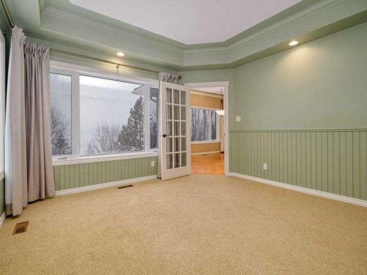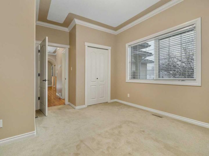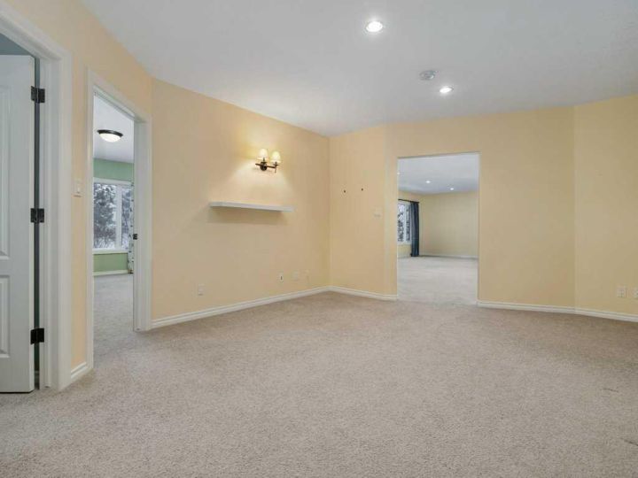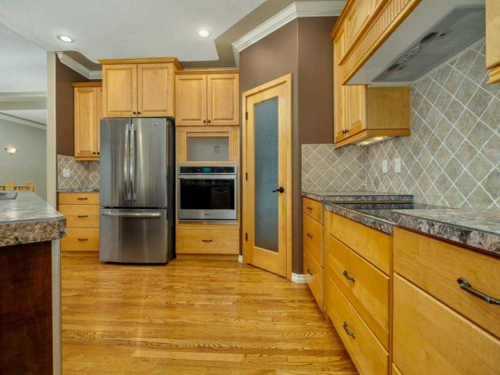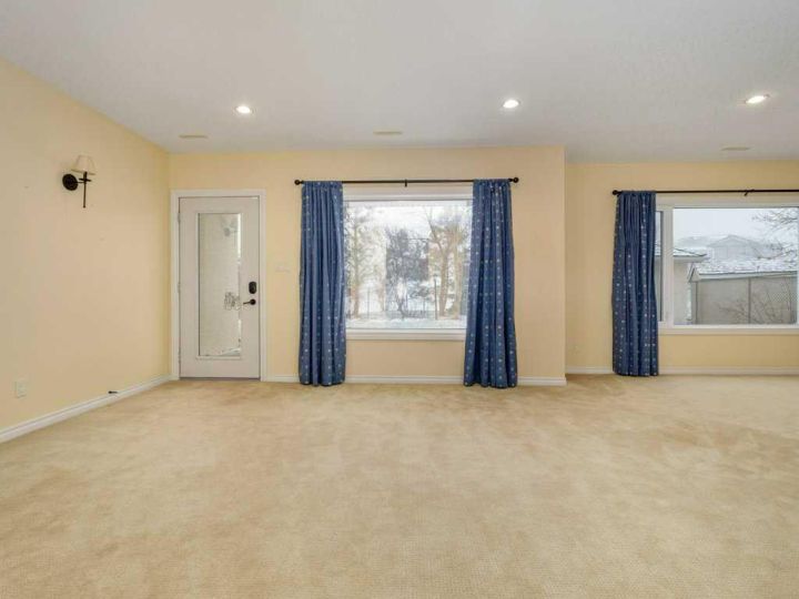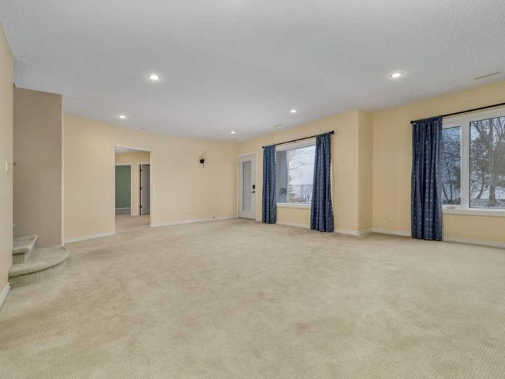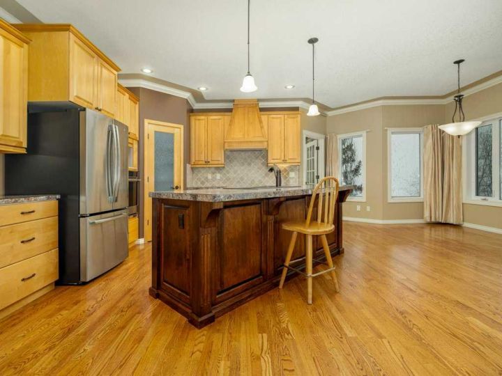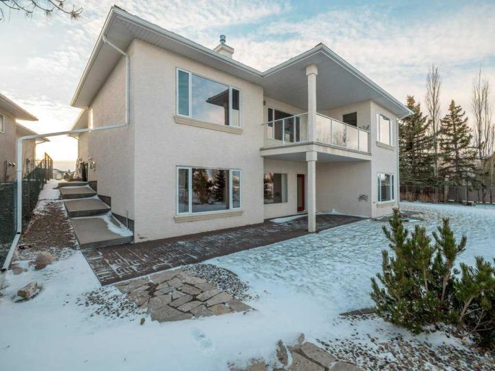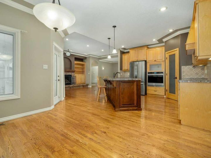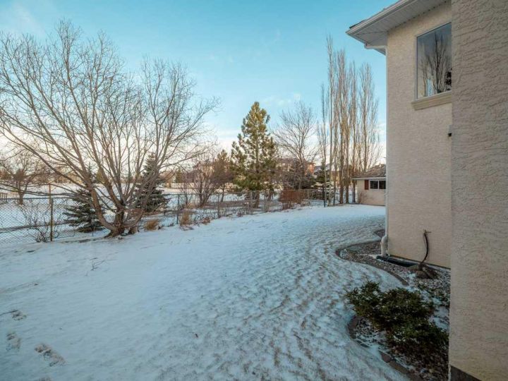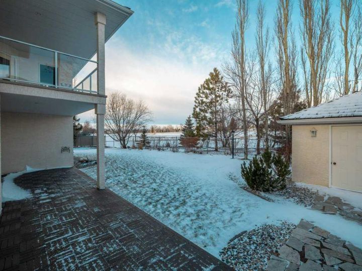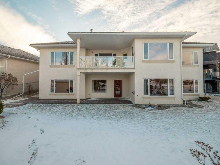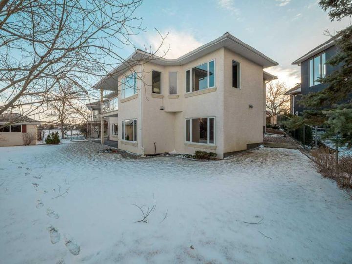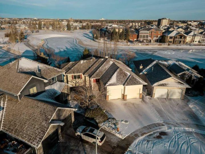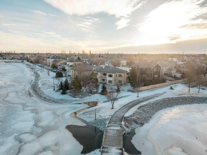 Perfectly positioned on a premier lot overlooking BOTH Fairmont Lakes, this RARE walkout bungalow offers a lifestyle defined by breathtaking views, tranquil green space, and direct access to scenic walking paths. From the moment you enter, the home impresses with its open, airy layout and elevated ceilings, all framed by sweeping panoramic lake views that are visible throughout the main living spaces. Despite its elevated outlook, the property maintains a remarkable feeling of privacy and seclusion, surrounded by natural beauty and green space. The fully finished lower level features a massive family room (or could be 2 spaces) with full walk-out access, ideal for entertaining, relaxing, or creating an exceptional home fitness area with views and easy access to the outdoors. A thoughtfully separated bedroom wing, complete with two additional bedrooms, a full bathroom, and a computer nook, makes the lower level perfect for a second living space or guest retreat. Additional highlights include finished hardwood floors, sleek maple cabinetry, built-in appliances, two gas fireplaces, main-floor laundry with soaker sink, and an impressive garage with 12.5-foot ceilings. A fully vented hobby room/workshop adds incredible versatility, while the powered shed and gas and electrical rough-ins for a future garage heater complete the package. This is a rare opportunity to own a one-of-a-kind lake front home where stunning views, walking paths, and peaceful green space come together in perfect harmony.