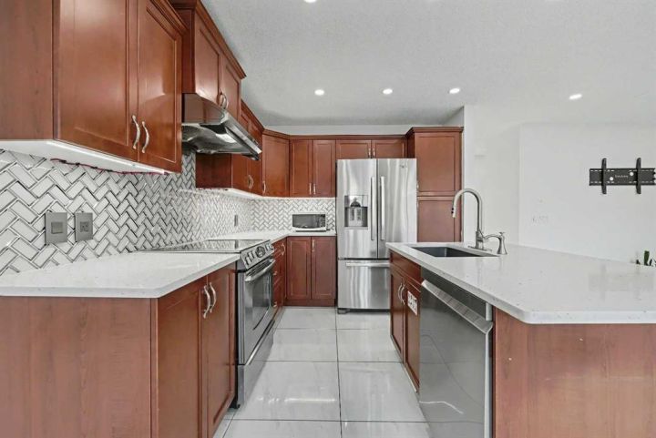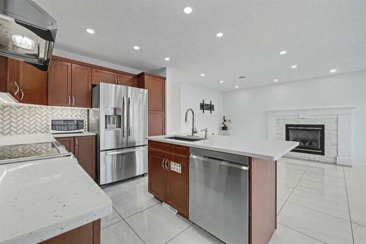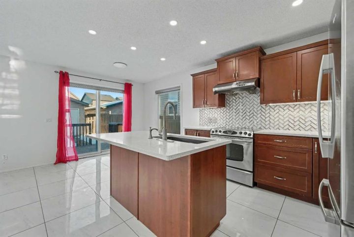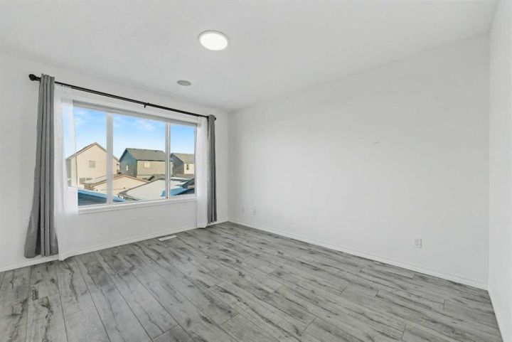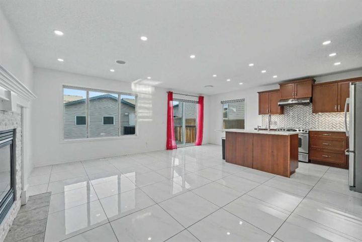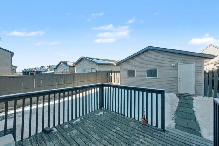 Gorgeous Family Home | 3 Bedrooms | 2.5 Bathrooms | Main Level Flex Room | Open Floor Plan | Bright with Natural Light | Recessed Lighting | Built in Speakers | Quartz Countertops | Stainless Steel Appliances | Herringbone Tile Backsplash | Gas Fireplace | Spacious Bedrooms | 4pc Primary Ensuite Bath | Custom Built-in Closet | Upper Level Laundry | Unfinished Basement | Basement Rough-ins | Great Backyard | Deck | Fully Fenced | Rear Double Detached Garage | Alley Access | Incredible Location | Close to Skyview Springs Playground | Family Friendly Neighbourhood. Welcome home to your gorgeous 3 bed, 2.5 bath family home boasting 1,601 SqFt throughout the main & upper levels with an additional 780 SqFt in the basement of a blank canvas. The beauty of this home starts outside with a statement red front door. Step inside to a foyer with great closet storage and open to below ceilings. The front flex room is a great space for overnight guests, a home office or day seating. The flex room is outfitted with built-in closet storage great for any type of organization. The heart of the home is the open floor plan kitchen, dining and living rooms. The kitchen is finished with timeless herringbone backsplash tiles, quartz countertops, stainless steel appliances and ample cabinetry. The centre island is the perfect spot for small meals or socializing while you cook. The dining room is ready for a dinner table to fit the whole family during the holidays and has sliding glass doors that lead to the deck. The sliding glass doors give both natural light and quick access to your backyard for outdoor cooking, dining and entertainment. The living room is centred with a gas fireplace and TV ready wall. The main level is complete with a 2pc bath. Upstairs holds 3 bedrooms; the primary and 2 additional. The primary bedroom is spacious and has a private 4pc bath that leads to a walk-in closet with custom storage. Bedrooms 2 & 3 share the main 4pc bath with a tub/shower combo. The upper level laundry room is every home owner's dream as its located near all the bedrooms. Downstairs, the unfinished basement has endless opportunities as its a blank canvas; design this space to fit your family's needs. Outside, the fully fenced backyard is a private oasis to enjoy in the summer months and is your quick access to your rear double detached garage. The garage has alley access and the front of the home has street parking readily available. This home is located in a family friendly environment and is close to all amenities, parks & playgrounds! Hurry and book your showing at this gorgeous family home today!