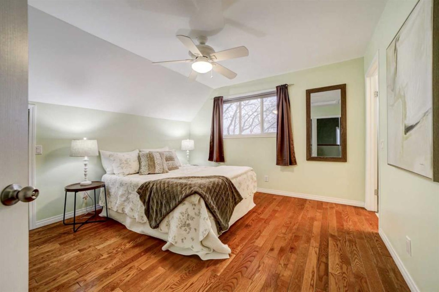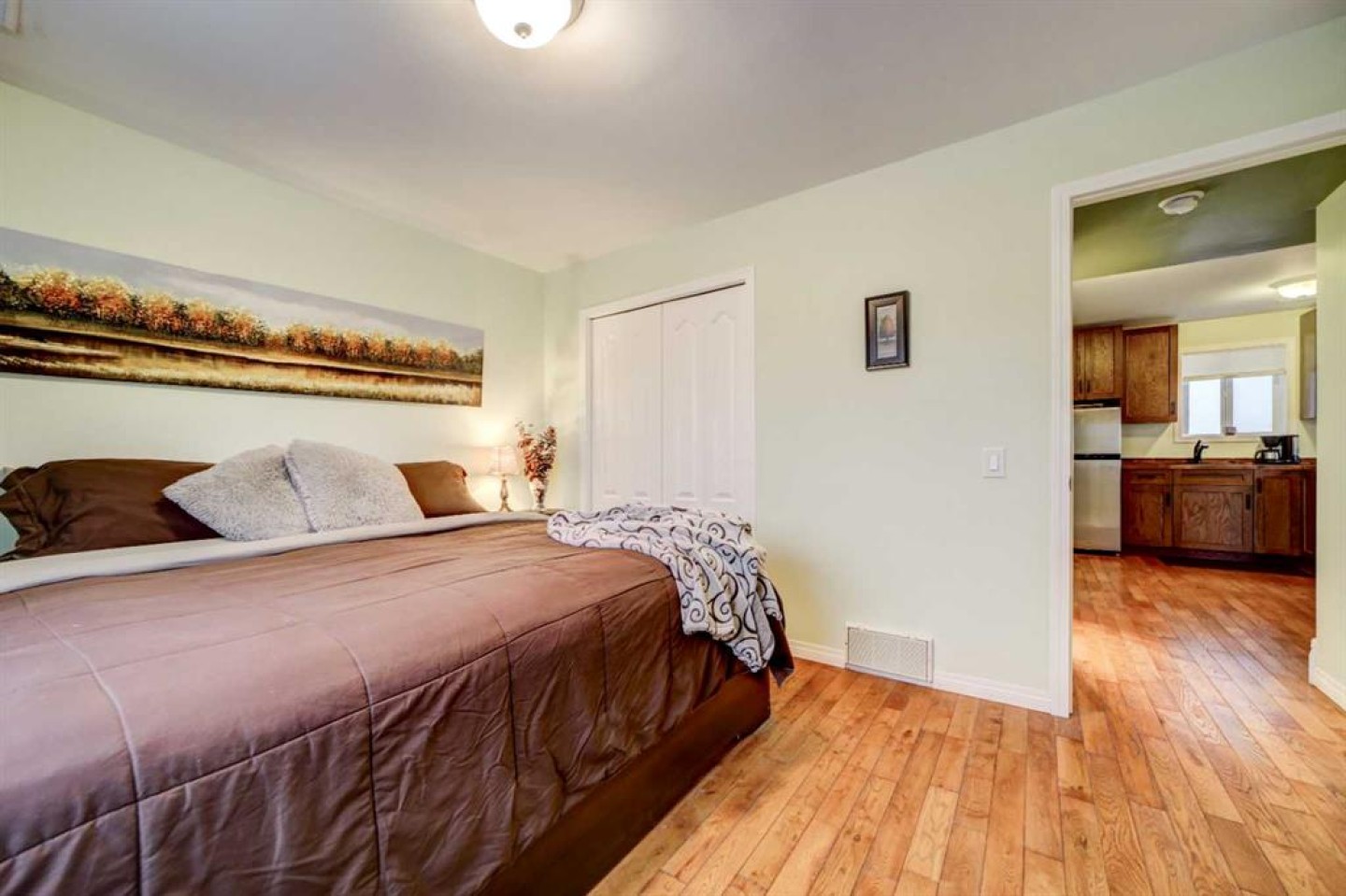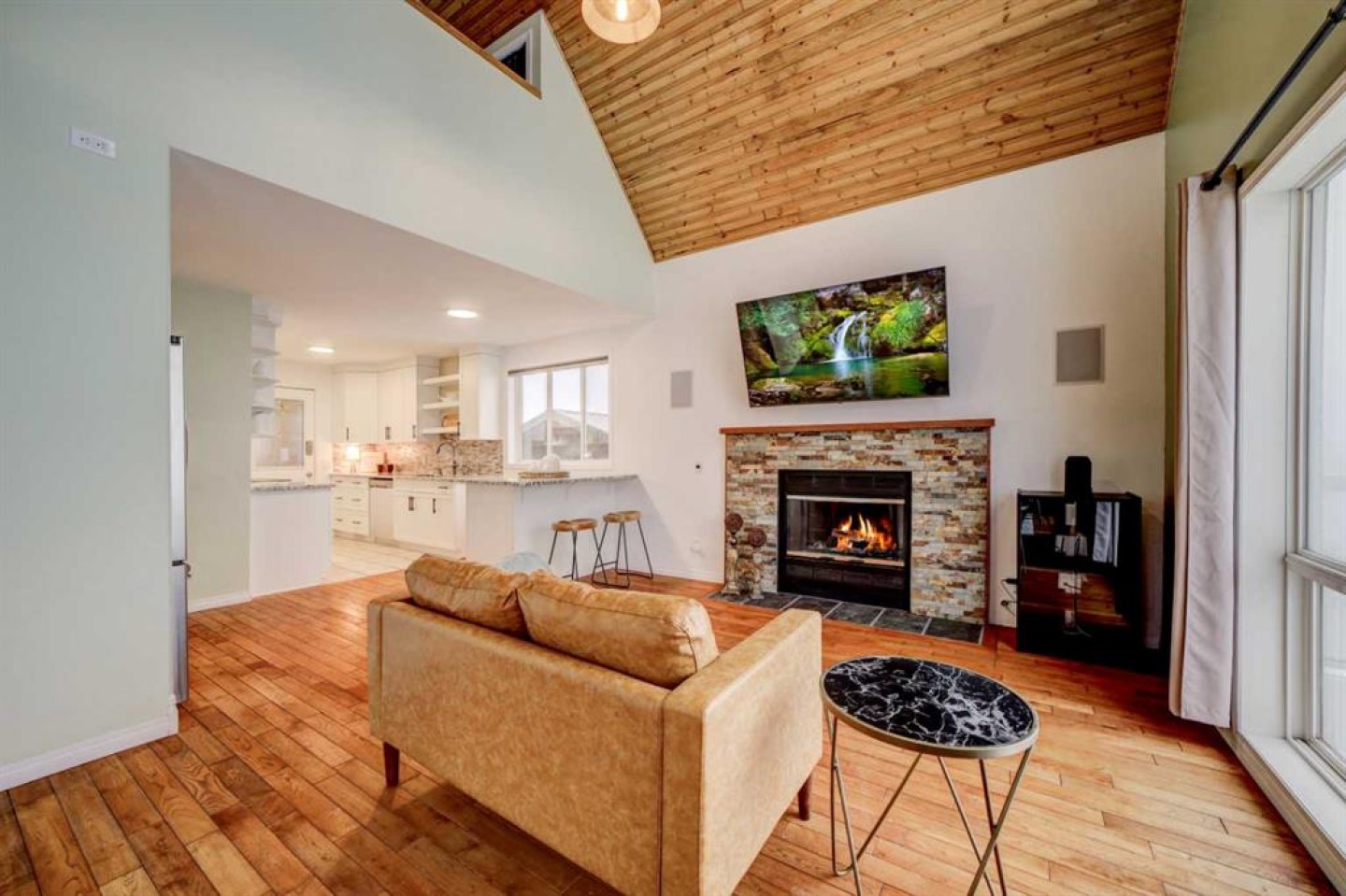 This property truly has it all and is move-in ready! Situated on 0.91 acres at the end of a quiet street, the home has the most amazing, unobstructed mountain views. Built on a slab foundation, the first floor features an enclosed sunroom - the perfect place to enjoy the views in any weather, with an electric fireplace for cooler days. The family room features dual patio doors leading to the sunroom, providing natural light and access to the views. This level also has a large bedroom and beautifully renovated bathroom and kitchenette. Subject to the appropriate municipal approval, it would make a great short-term rental. The second level features gorgeous, vaulted ceilings and a large deck, all designed to highlight the beautiful mountains. There are rich hardwood floors, and a fully renovated kitchen with granite countertops and good-sized breakfast bar peninsula. The open floor plan brings everyone together with a wood fireplace providing warmth & ambience. The top floor is dedicated to the private primary bedroom, complete with four-piece ensuite and walk-in closet. Additional amenities include a double heated garage and newly fenced private yard with an expansive deck, built-in garden boxes and a large gate suitable for RV or additional parking. An added bonus - the electrical wiring is in place to add a hot tub to the deck. Recent upgrades to the property include central air conditioning, hot water tank, water softener, reverse osmosis water filtration system, carpeting, and remote-controlled blinds on the top windows, as well as insulation, windows and a gas furnace in the garage. The property’s exterior was improved with the addition of new foam insulation and new stucco on the house, a newly poured concrete driveway and walkway, and fresh paint on the garage. There is so much to see at this property - check out the attached video and virtual tour. Call your favourite REALTOR® to schedule a showing today!