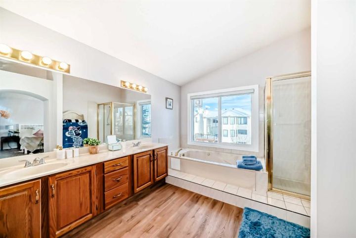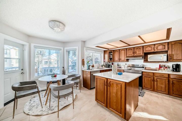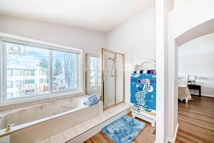 Welcome to this Beautiful, Expansive 2,404 sq.ft. Walkout Home with a Secondary Suite in the sought-after community of Edgemont. Situated only a stone throw from Edgemont Elementary School, this stunning fully renovated 5 bedroom, 3.5 bathroom family home offers over 3,500 sq.ft. of fully developed space and Sunny South-West Exposure. Extensive Upgrades: 30 New Triple Pane Windows, 2 New Furnaces with Google Nest smart thermostats, New Quartz counters and Dishwasher in Kitchen, Newer Luxury Vinyl Plank flooring through the first 2 levels, Upgraded Main Bath with Newer Tub, Tile & Shower Fixtures, Newer Vinyl Deck, Newer Front and Rear Doors, Newer Washer & Dryer, Newer Hoodfans and Tile Roof. The main floor features a spacious open-concept layout with high vaulted ceilings in the living & dining room, creating a seamless, high-end finish. The beautiful kitchen with sunshine ceiling, new counters & dishwasher, a central island and ample cabinetry for storage. The adjacent dining area offers seamless indoor-outdoor living with access to a new vinyl deck — perfect for relaxing or entertaining, family room with built-in bookshelves and a cozy fireplace, convenient main floor den, half bath and laundry room complete this level. Three spacious bedrooms on the upper level include a large primary suite with high vaulted ceilings, a 5-pc ensuite (double vanity, jetted tub, separate shower) and a walk-in closet, 2 bedrooms share a Jack and Jill 5 pc bathroom complete with a new bathtub and shower fixtures. The fully developed walkout level includes a secondary suite with a large living room with built-ins and a fireplace, a kitchen with new hoodfan, 2 bedrooms, a newer 4 pc bathroom, laundry room with second set of washer/dryer and extra room for storage, and a sun room. Outside, you'll find a private, fully landscaped & fenced backyard with mature trees offering a serene outdoor retreat. This exceptional home offers the rare combination of modern upgrades in a mature community, just steps from top-rated schools, Tennis Courts, shopping centers, Nose Hill Park, and Transit. Easy commute to downtown, the University of Calgary, Foothill & Children’s Hospital, Market Mall and All Major Routes. An absolute must-see in Edgemont.