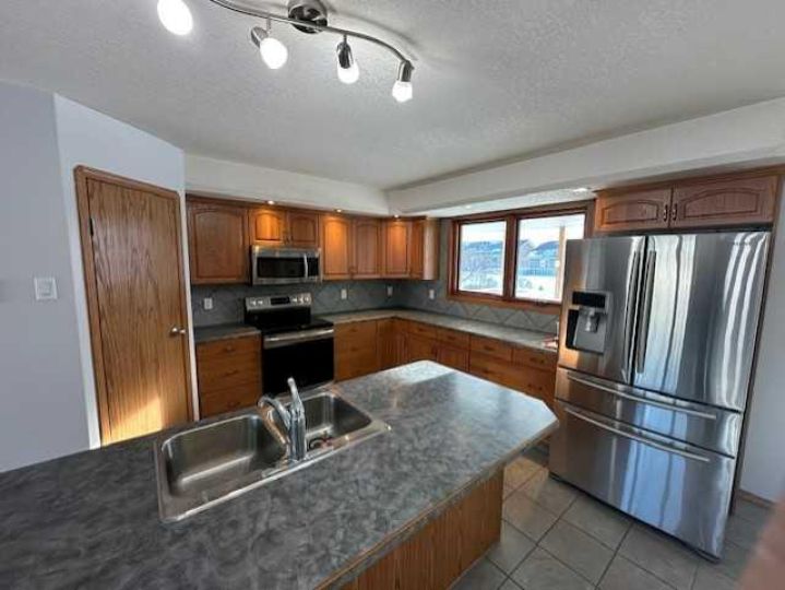 This well-designed single-family home, built in 2007, offers 1,571 square feet of comfortable and functional living space with a total of five bedrooms and three and a half bathrooms. The main floor features three bedrooms, including a spacious primary suite with a walk-in closet and a private four-piece ensuite, along with the convenience of main-floor laundry. The kitchen is thoughtfully laid out with a pantry, island with sink, and heated tile flooring, making it both practical and inviting. The basement adds two additional bedrooms, a large family room, and in-floor heat for year-round comfort, which is also extended to the garage. A top-of-the-line Napoleon wood-burning fireplace insert provides warmth and character, while triple-pane Loewen windows enhance energy efficiency throughout the home. Outside, enjoy a covered deck at the back of the house and ample parking, including RV parking. The impressive 30' x 28' attached garage features an 11' ceiling, an 18' x 8' street-facing door, a 9' x 8' rear yard door, floor drain, and both hot and cold water. Additional highlights include a built-in central vacuum system, making this home a standout option for comfort, storage, and versatility. Call today to book your showing!