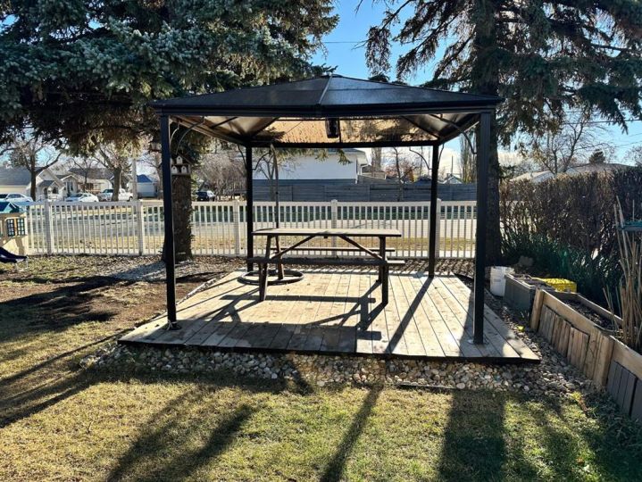 Welcome to this beautifully updated and well-cared-for bungalow located in the welcoming city of Camrose, Alberta. Offering 1,032 square feet of thoughtfully designed living space, this charming home features five spacious bedrooms and two four-piece bathrooms, making it ideal for families or those seeking extra room to grow. The open-concept main floor creates a bright and inviting atmosphere, perfect for everyday living and entertaining. The fully developed basement adds valuable additional living space, providing flexibility for a family room, home office, or guest accommodations. Situated on a large lot, the property offers an expansive outdoor space complete with a generous garden, fire pit area, and plenty of room for RV parking. A newer garage add peace of mind, while the covered space between the house and garage is perfect for storage or keeping gardening tools organized and protected.This home is ideally located within walking distance to schools, playgrounds, downtown Camrose, shopping, golf courses, and the local airport—offering both convenience and lifestyle appeal. A wonderful opportunity to own a move-in-ready bungalow in a prime Camrose location.