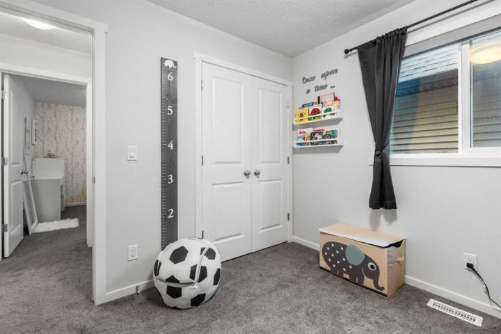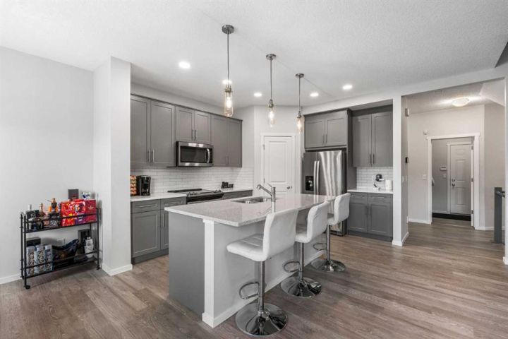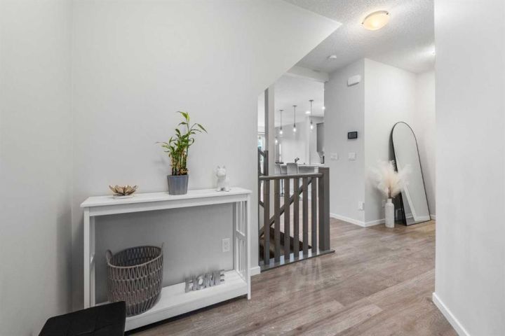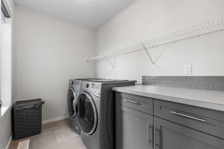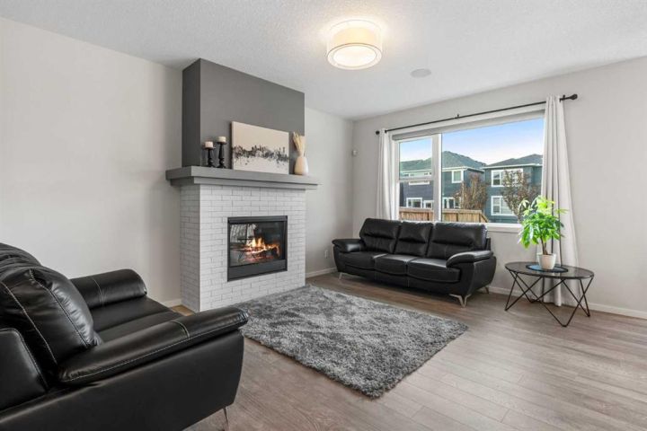 FORMER SHOWHOME | GEMSTONE LIGHTS | TRIPLE PANE WINDOWS | OVERSIZED GARAGE | BUILT IN SPEAKERS | CENTRAL A/C. Welcome to this exceptional former showhome in the vibrant community of BELMONT, where THOUGHTFUL DESIGN meets EVERYDAY LUXURY. From the moment you arrive, this home stands out with its CUSTOM GEMSTONE LIGHTING and OVERSIZED GARAGE, perfect for larger vehicles or extra storage. Step inside to discover a BRIGHT OPEN CONCEPT MAIN FLOOR with WIDE PLANK VINYL FLOORING, HIGH 9 FT CEILINGS, an inviting LIVING AREA WITH GAS FIREPLACE, and a CHEF’S KITCHEN equipped with QUARTZ COUNTERTOPS, STAINLESS STEEL APPLIANCES, a WALK IN PANTRY, and sleek CABINETRY. A SKYLIGHT ABOVE floods the space with natural light, enhancing the airy feel. Upstairs, you will find a SPACIOUS BONUS ROOM WITH HIGH CEILINGS, a serene PRIMARY SUITE WITH SPA INSPIRED 5 PIECE ENSUITE and WALK IN CLOSET, plus TWO MORE GENEROUS BEDROOMS and a conveniently located LAUNDRY ROOM. TRIPLE PANE WINDOWS throughout provide ENERGY EFFICIENCY and a WHISPER QUIET INTERIOR. The entire home is wired for sound with IN CEILING SPEAKERS and a HIGH END AMPLIFIER SYSTEM, ideal for entertaining or enjoying your favourite playlists in style. Stay cool in summer with CENTRAL AIR CONDITIONING and enjoy the MODERN ELEGANCE of every corner in this professionally designed space. The BASEMENT offers a blank canvas, ready for your custom vision with LARGE WINDOWS and PLUMBING ROUGH INS. This is the perfect blend of SHOWHOME QUALITY FINISHES and REAL WORLD FUNCTIONALITY in one of Calgary’s most desirable communities.