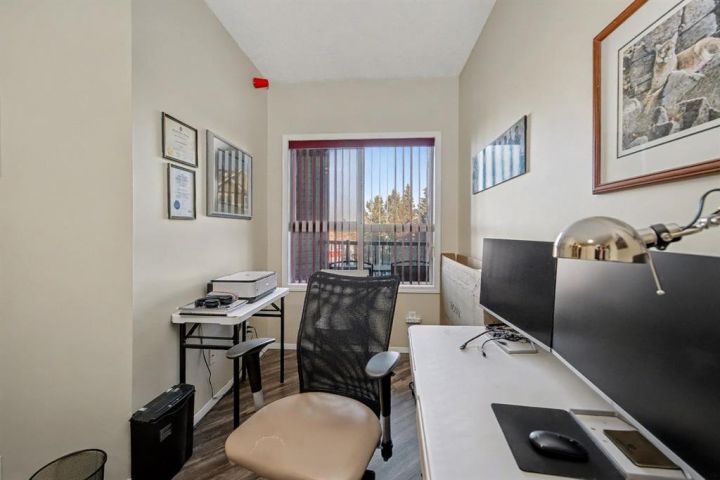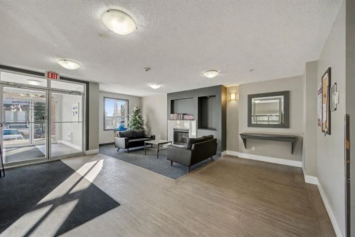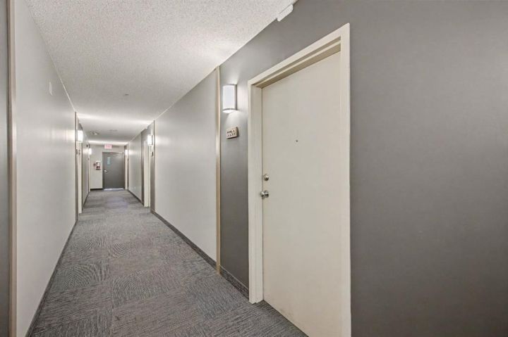 Amazing VALUE for this great condo with a large BALCONY overlooking the courtyard. This BEAUTIFUL and well-maintained unit features an OPEN layout with 9-foot ceilings — perfect for living and entertaining. The kitchen features a large eating bar overlooking the dining area and living room. The spacious living room has patio doors that lead to your BALCONY. The large bedroom has a walk-in closet and a sitting area, or plenty of room to set up a home office. There is also INSUITE LAUNDRY and storage. This unit comes with a titled PARKING STALL just steps from the main entrance. This condo is perfect for first-time buyers, downsizing, or investors. Condo fees include heat, electricity, water, and more. The concrete building offers a nice, quiet place to come home to, with a welcoming lobby. Excellent location! Close to shopping, transit, amenities, and easy access to major roadways. Only minutes to downtown. Don’t miss out on this great condo at an affordable price!