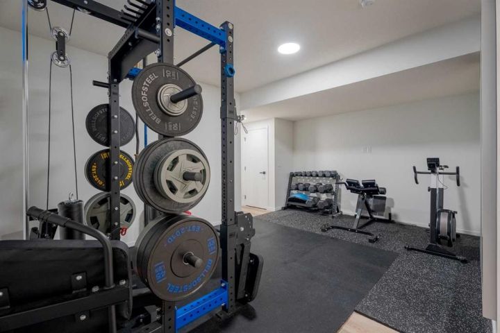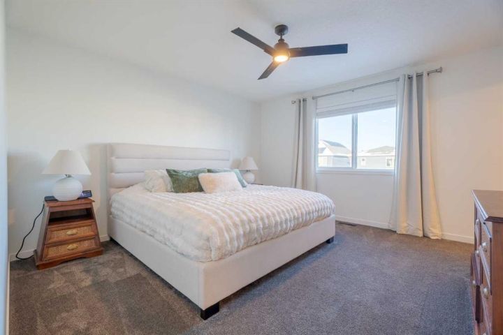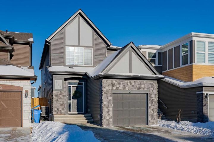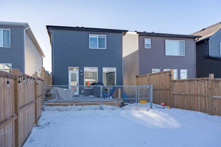 Welcome to an extraordinary residence in the prestigious southwest community of Belmont, where refined design and modern luxury converge. This newer, custom-built home is a masterclass in sophisticated living, thoughtfully curated with impeccable upgrades and meticulous attention to detail throughout, offering a truly elevated lifestyle. Upon entry, you are welcomed by an elegant, on-trend palette that beautifully complements the home’s timeless, earthy aesthetic. The stunning great room is anchored by upgraded wide-plank flooring and a striking 50-inch linear electric fireplace, complete with a bespoke oak mantel—an inviting focal point for intimate evenings and refined entertaining alike. The kitchen is nothing short of exceptional, designed to inspire both form and function. Highlights include a generous walk-in pantry with additional counter space, a show-stopping oversized island adorned with upgraded quartz countertops, and a custom designer backsplash. Floor-to-ceiling oak cabinetry, enhanced with additional drawers and storage, pairs seamlessly with premium appliances, including a gas range and counter-depth refrigerator, showcasing craftsmanship of enduring beauty. The main level is completed by a discreet and stylish powder room, ideal for guests. Upstairs, the private primary retreat is bathed in natural light and features a spacious walk-in closet and a spa-inspired ensuite with an oversized shower. Two additional well-appointed bedrooms share a beautifully designed family bathroom, offering comfort and elegance for family members or guests. The upper-level laundry room elevates everyday living with full-length hanging space and solid shelving, transforming routine tasks into a refined experience. The professionally designed lower level extends the home’s versatility, featuring a spacious family room—currently staged as a private gym—along with a four-piece bathroom and a fourth bedroom, perfect for guests or extended family. Thoughtfully upgraded lighting throughout the home creates a warm, inviting ambiance, enhancing every space. Outside, the fully landscaped yard adds exceptional curb appeal and provides a welcoming outdoor setting ideal for entertaining and relaxation. Set within the sought-after Belmont community, this home offers an unparalleled lifestyle defined by contemporary design, functional elegance, and a strong sense of community. Residents enjoy scenic pathways, playgrounds, a forthcoming outdoor shopping centre, future recreation facilities, a library, and convenient access to major roadways including Macleod Trail and Stoney Trail—ensuring effortless travel to downtown Calgary and the Rocky Mountains. This is a rare opportunity to claim a truly luxurious haven in one of Calgary’s most exciting new communities.