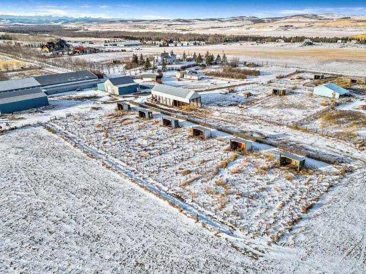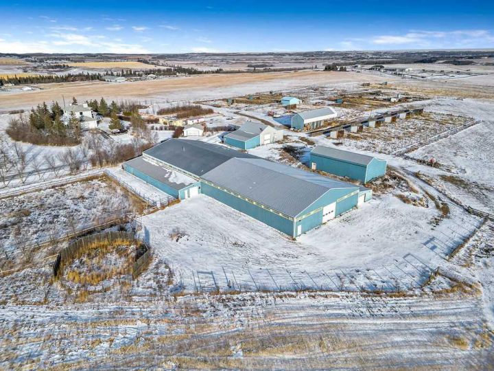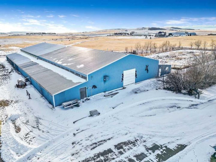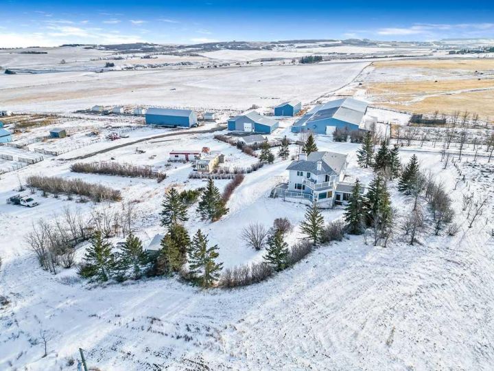 The perfect location for your next dream venture lies 8 km west of Okotoks at 373108 48th Street! Whether your vision is a private equestrian facility, or something more expansive, this exceptional property offers a rare opportunity. Follow the tree-lined driveway to a beautifully positioned two-story 2,268 sq. ft. home, perched atop the hill. The residence features West-facing mountain views, hardwood floors, and thoughtful attention to detail throughout. Upstairs, you’ll find three spacious bedrooms with ample closet space, custom storage & a master suite balcony. Bathrooms are conveniently located on every level, including a generous primary ensuite overlooking the mountains. The fully developed walkout basement offers a media area and a sauna/hot tub room with direct access from the house. Covered parking is abundant, with a double attached garage and an additional double detached garage located at the base of the driveway. From the house, enjoy sweeping southern views across 145+acres of productive pasture and hay land. Directly across the driveway sits a 70'x200' indoor arena complete with an attached heated stalling area and wash facilities. An outdoor riding arena is conveniently located beside the barns, ideal for summer use. The arena is well-equipped with a full four-piece bathroom, a tack locker room, kitchen facilities, and an office. The facility is thoughtfully designed with over 20 paddock spaces, all featuring automatic waterers and shelters. Two wells & a cistern system service the property, ensuring ample water supply. The layout of the property has been carefully planned, including an additional barn located among the paddocks, ideal for tack storage or veterinary work. A pole barn provides a generous amount of hay storage, and a heated shop offers secure space for tractors, equipment, and supplies. With so much to explore, come and enjoy what it truly means to be in the heart of the Foothills!