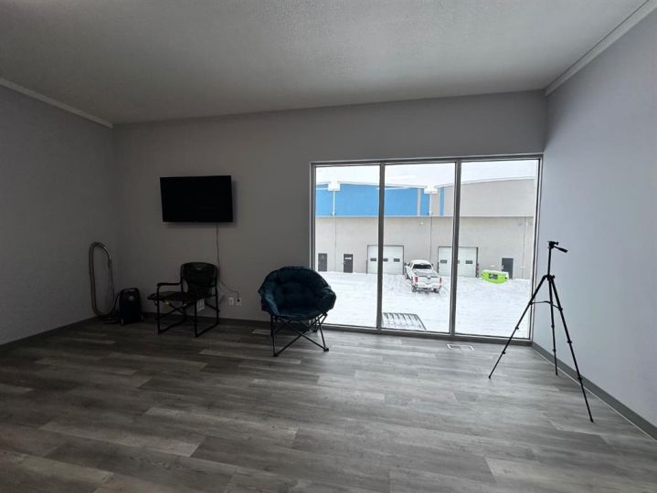 This high visibility commercial condo in Centre 84 is available for your growing business! This unit features a front showroom/reception area, featuring a wall of windows. There is separation from the rear 'working' area, which features a 10-foot overhead door, gas heater, 220V electrical plug-in as well as in-floor drain. You will also find two bathrooms and two storage rooms back here. Upstairs is developed to be open and bright, with one private office and a kitchen area with fridge, sink and plenty of cupboard space. There is potential to close in more office spaces, or create open-air cubicles. This space next door, unit #207, is also available for sale and offers a wide open shop space. Consider purchasing both units to allow space for your growing business! Contatct your trusted Realtor today to schedule a viewing.