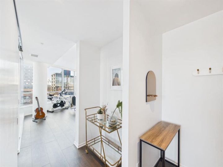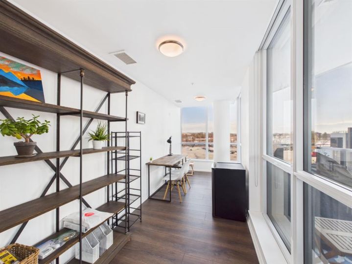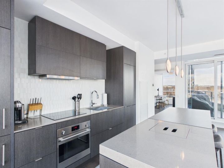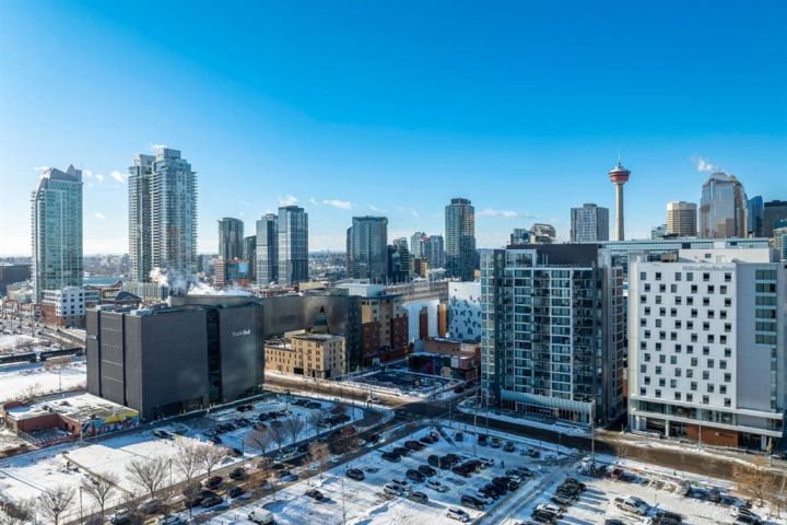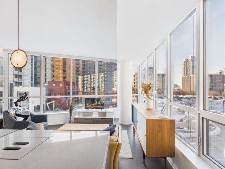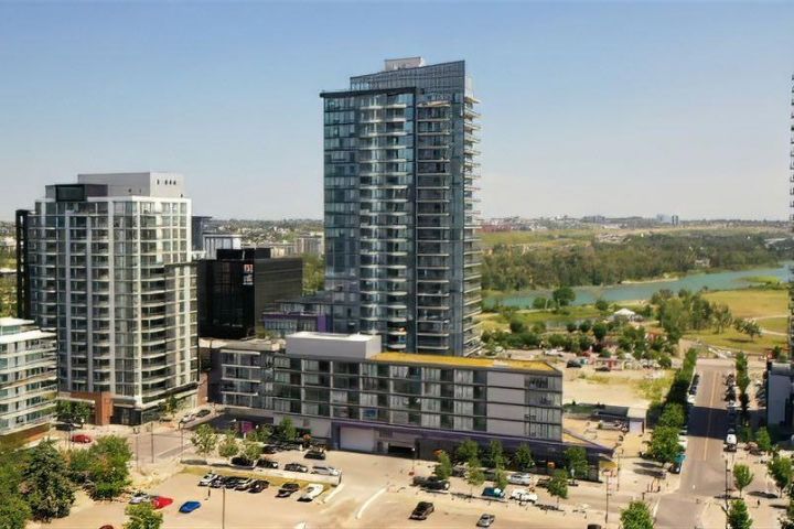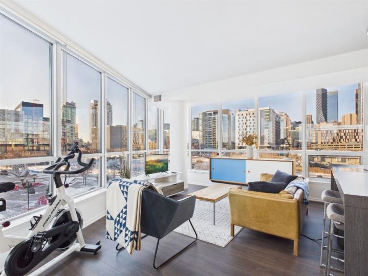 Wake up to sunlight pouring in from every angle in this third-floor 1 bedroom + den home in the Verve, where city living meets everyday comfort. With 180-degree views stretching from the southeast all the way to the northwest, your days begin with glowing sunrises and wind down with golden evening light filtering through expansive windows. The open-concept layout is both welcoming and functional, featuring laminate flooring, quartz countertops with apple-box storage, and a modern kitchen designed for relaxed mornings and effortless entertaining. The versatile den easily functions as a second bedroom, home office, or guest retreat, adapting to your lifestyle as it evolves. Enjoy year-round comfort with air conditioning, in-suite washer and dryer, and the convenience of a storage locker and an underground titled extra-wide parking stall. Beyond your front door, the Verve offers exceptional amenities including a beautifully landscaped courtyard, a fully equipped fitness centre, and an inviting social room with cozy fireplaces. With easy access to East Village, river pathways, dining, and downtown amenities, this bright, modern home delivers the perfect blend of comfort, style, and connected urban living. Whether you are looking for inner-city living or an investment property this home is perfect!