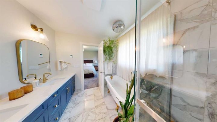 Back on the market and reduced in price here is a fully renovated farmhouse-style home offering modern comfort with timeless charm. Just 5 minutes south of Plamondon, the property spans 10 acres and features an oversized double garage, 4 bedrooms, 3 bathrooms, a fully finished basement, and high-quality finishes throughout. Step inside to find warm, wood-tone engineered hardwood floors that lead into a spacious, open-concept living and dining area. The beautifully designed kitchen is a standout with quartz countertops, a custom-made range hood, a farmhouse sink, and generous storage, including a walk-in pantry. Every detail has been thoughtfully considered, especially the stunning ensuite, which includes dual sinks, a glass shower, a soaker tub, a water closet, and heated floors for added luxury. The home is nearly complete—just a few finishing touches remain. It also features a 3000-gallon cistern, septic pump-out system, and ample outdoor space for kids or animals to enjoy.