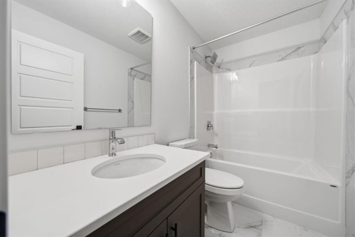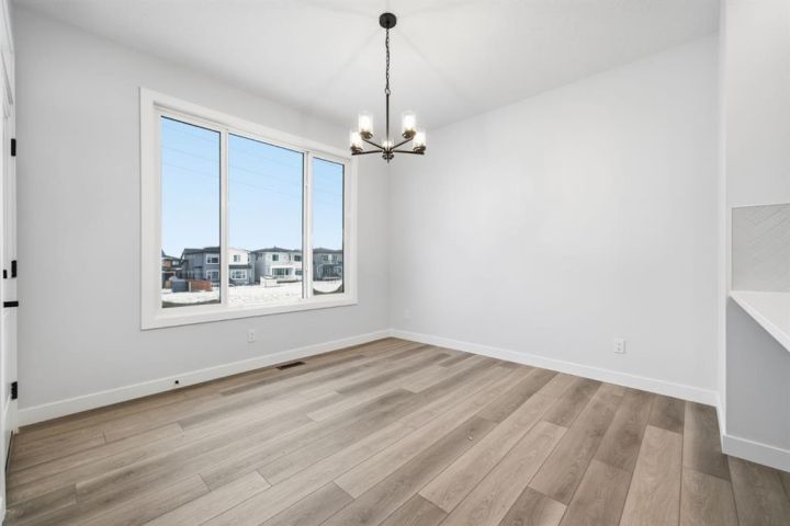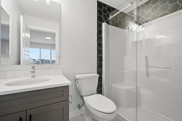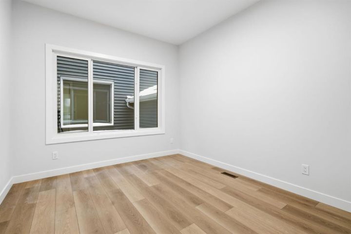 Discover the Pierce 2 - a modern, thoughtfully designed home by a trusted builder with over 70 years of experience. This energy-efficient home features designer-curated finishes, smart home technology, and moving concierge services included. The layout offers a walkout basement, a main-floor flex room with French doors, and a full bath with a walk-in shower. Only the garages are attached, providing the privacy and feel of a detached home. The sleek kitchen includes stainless steel appliances, a gas range, and a separate spice kitchen with pantry shelving. The great room features an electric fireplace, and the rear deck comes with a BBQ gas line. Upstairs are two spacious primary bedrooms, each with walk-in showers, including a luxurious five-piece main ensuite. Finished with LVP flooring, tile in bathrooms, and quartz countertops throughout. Built Green certified with triple-pane windows, high-efficiency furnace, solar-ready rough-in, EV charger rough-in, and a full smart home package.