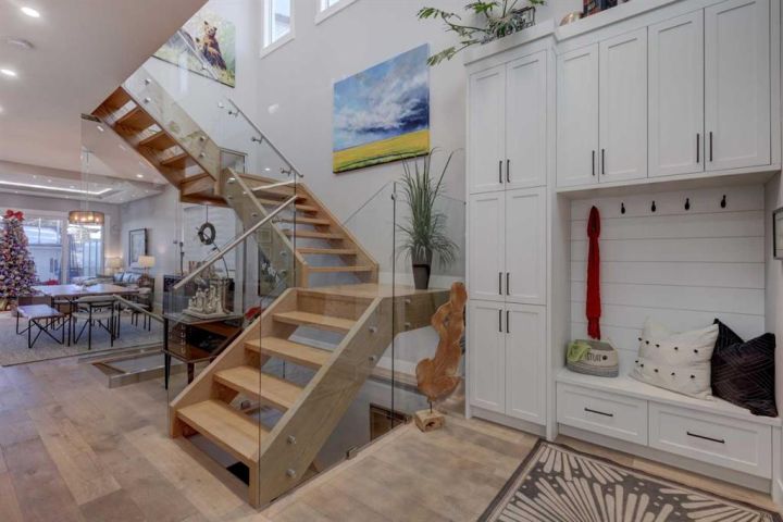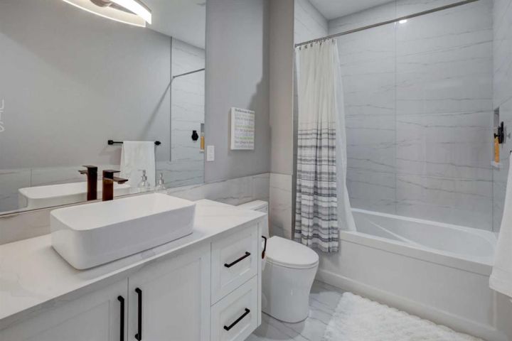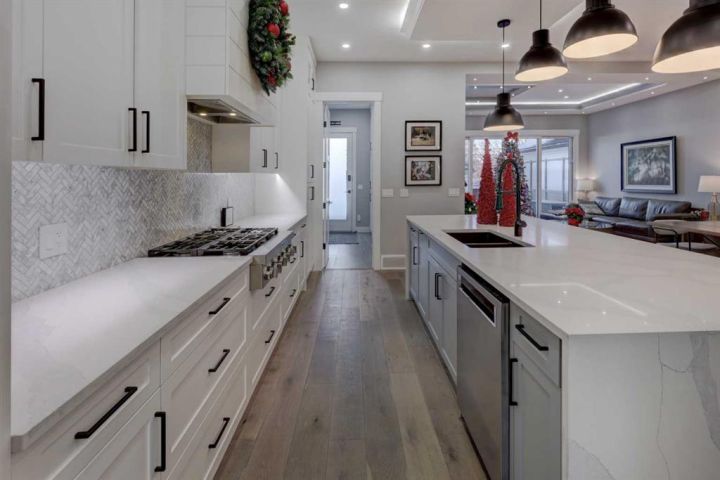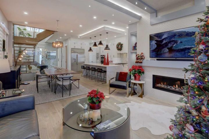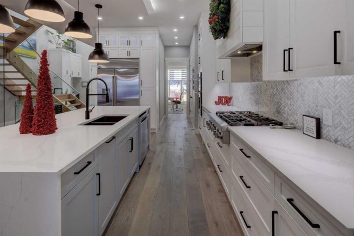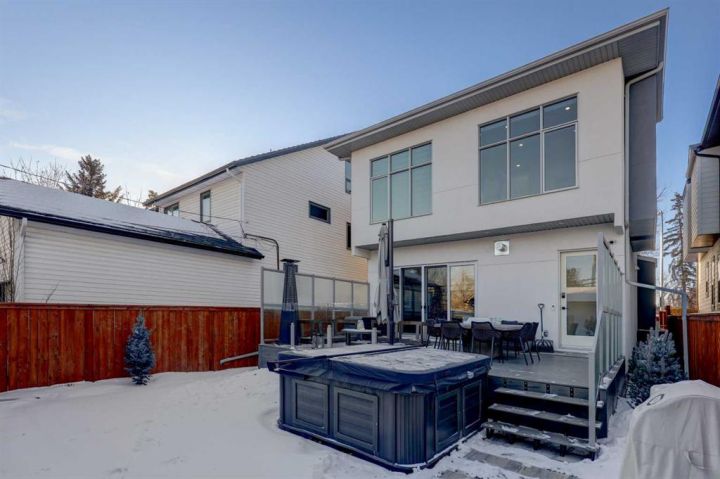 Stunning custom-built executive home with over 3500 Square feet of developed living space including FOUR bedrooms, FOUR full baths, a professionally developed basement, and heated TRIPLE-car garage, ideally located across from a park in Killarney. Stylish exterior with custom stone accents, gemstone lighting and inviting front patio. Open-concept design with neutral tones, 9’ & 10’ ceilings, wide-plank hardwood flooring, custom mouldings, barn doors, and Hunter Douglas blinds throughout. Chef-inspired kitchen with huge pantry features a six-burner gas range, professional stainless appliances, waterfall countertops, ample white cabinetry, and designer lighting. Spacious living room with gas fireplace and tray ceiling opens to a large deck, saltwater hot tub, and fully fenced yard. Show-stopping foyer with custom locker storage and open-riser staircase with glass railings, plus main-floor powder room and mudroom. Primary retreat offers vaulted ceilings, luxurious 5-piece ensuite with heated floors, floating double vanity, soaker tub, walk-in closet, and private outdoor seating area. Two additional upper bedrooms each include ensuite baths, plus upper-floor laundry. Entertainer’s basement features wet bar, fourth bedroom, fourth bath with heated floors throughout, wine cellar, gym, and ample storage. Other features include reverse osmosis water filtration, water softener, radon mitigation and Professionally landscaped low-maintenance yard with irrigation & artificial turf. This is the perfect family home in a great location just minutes to downtown, close to shops and all amenities including schools & parks.