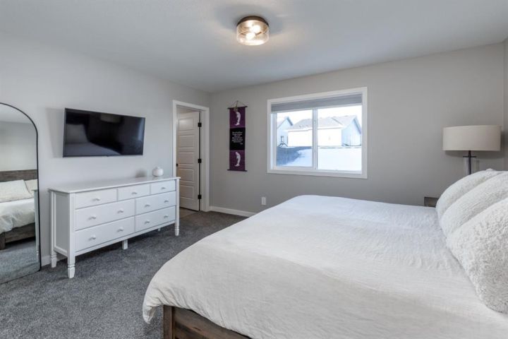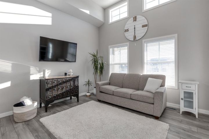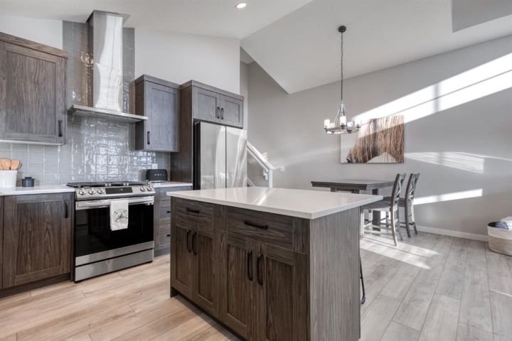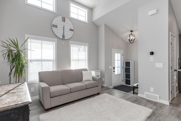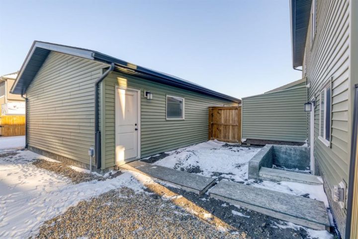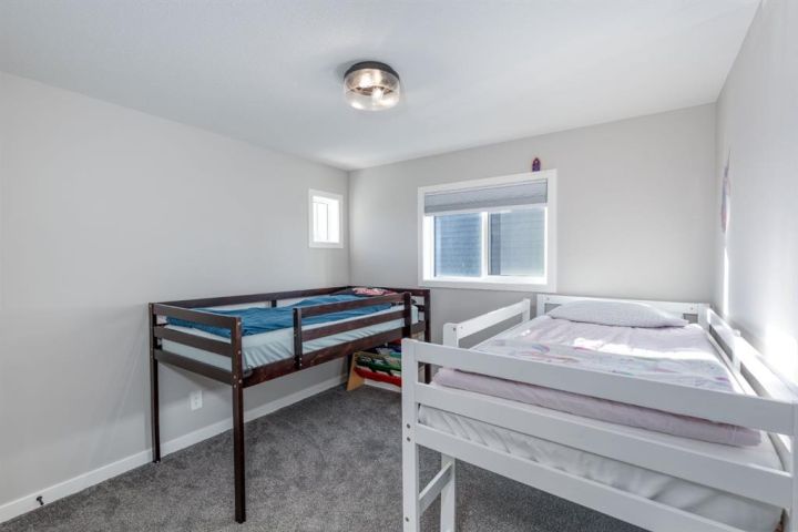 Welcome to this impeccably maintained 3-level split in the heart of Cooper’s Crossing, ideally positioned across from a park in one of Airdrie’s most sought-after communities. Offering over 1,600 square feet of beautifully developed living space, the home features two bedrooms upstairs and one down, complemented by three full bathrooms for exceptional functionality. The chef-inspired kitchen showcases quartz countertops, a gas stove, and generous cabinetry, flowing seamlessly into refined yet inviting living spaces designed for both entertaining and everyday comfort. The lower-level family room provides a warm, versatile retreat, while the unfinished basement with a massive crawl space offers outstanding storage and future potential. Completing the home are low-maintenance rock landscaping, front-load laundry, and a double detached garage that is fully insulated and drywalled. All of this, set close to schools, walking paths, and amenities, delivers elevated living in an exceptional park-side setting.