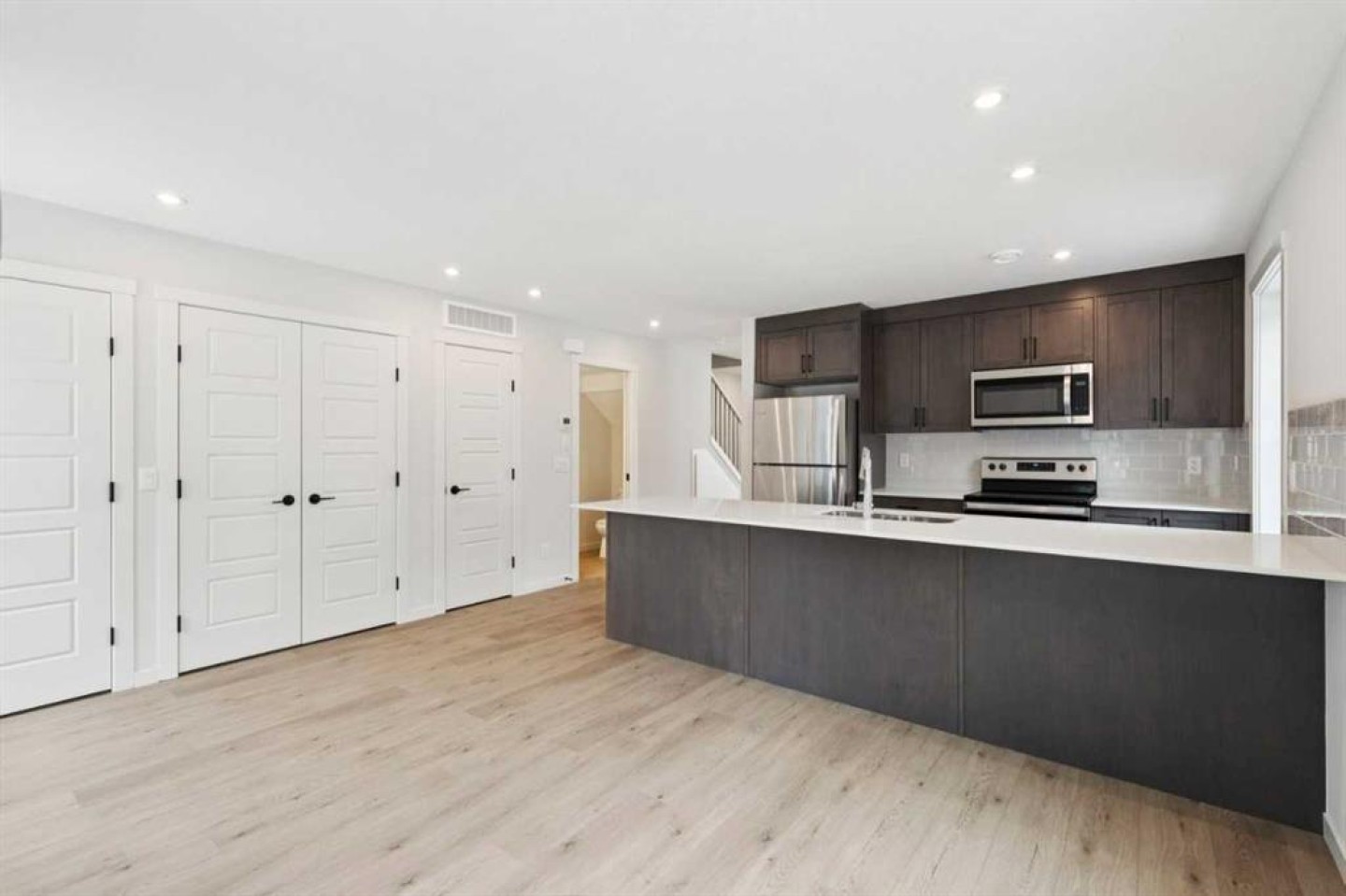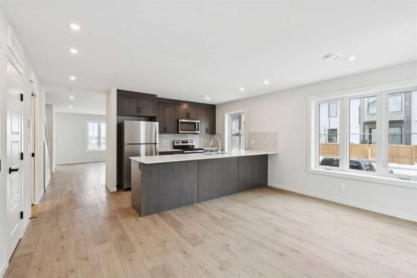 Welcome to the Empire II by Avalon Master Builder — a 1,430 sq ft., 3-bedroom, 2.5-bath townhome that blends modern style with exceptional energy efficiency. The open-concept main floor features a spacious kitchen island, sleek White Ice quartz countertops, and a 6-piece Whirlpool appliance package, with durable luxury vinyl plank flooring throughout. Upstairs, you’ll find three generous bedrooms, including a primary bedroom with a walk-in closet and ensuite, plus convenient upper-floor laundry. A smart under-stair storage cubby adds extra functionality. Enjoy your south-facing, fully fenced backyard—perfect for kids, pets, or entertaining—complete with BBQ gas line, landscaping, and irrigation. Built to exceed 2030 building code standards, this EnerGuide-certified home includes superior insulation, triple-pane windows, and advanced construction techniques to keep utility costs low and comfort high. Every detail is designed for today’s lifestyle and tomorrow’s sustainability. Photos are representative.