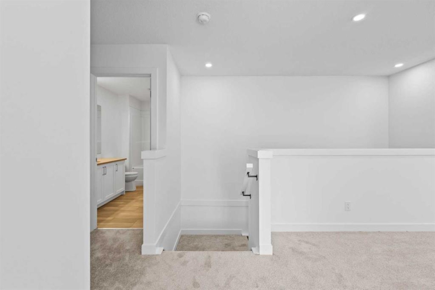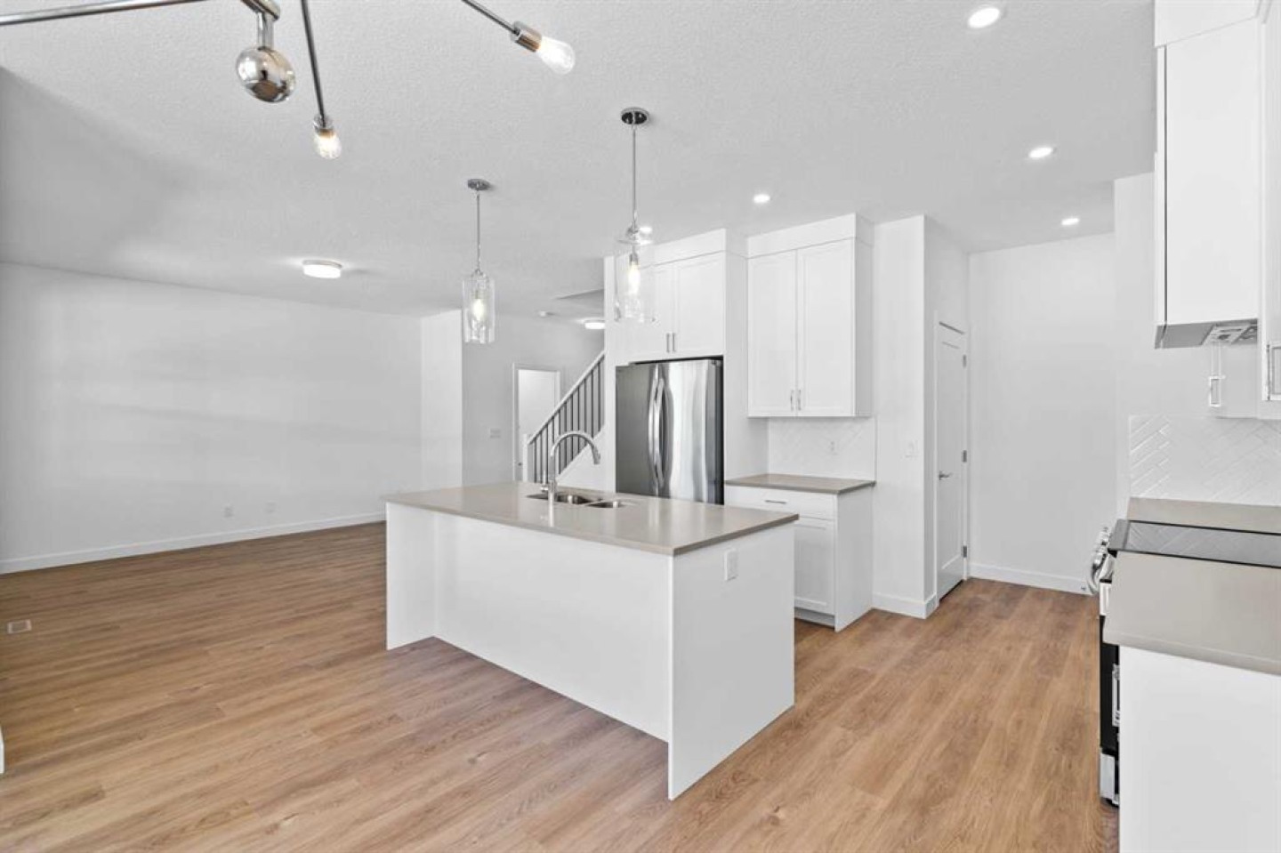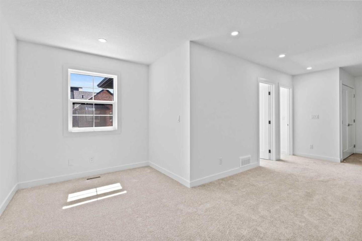 Welcome to luxury and convenience built by Vesta Properties - in the heart of Airdrie’s award-winning community of Cooper’s Crossing. This brand-new beautifully crafted interior-unit townhome combines everyday comfort with smart design. Step inside to discover a bright, functional main level that includes a stylish gourmet kitchen with an oversized island and stainless steel appliances, a cozy family room. Upstairs, a sun-soaked bonus room offers the perfect space to unwind, work from home, or enjoy family time. Just off the bonus area, you’ll find two additional bedrooms, a full bathroom, and a convenient upstairs laundry space ( No washer and dryer in unit). Also you will find your primary bedroom, which is a retreat complete with vaulted ceilings and a spa-inspired ensuite. Enjoy the added luxury of 9-foot ceilings on both the main floor and the basement, creating a spacious and airy atmosphere throughout. Summer evenings are made better on your covered west-facing balcony, with a gas line for your BBQ and views of the landscaped green space, offering a peaceful, family-friendly backdrop. Additional highlights include a double attached garage, modern contemporary exteriors, and fully landscaped yards designed for ease and curb appeal. And here’s the best part... These homes offer a true Lock & Leave lifestyle—experience it at its best! Whether you're off traveling, managing a busy career, or simply done with yard work and snow removal, you can lock the door and go. No stress. No fuss. Just effortless, carefree living. Book your exclusive tour today!