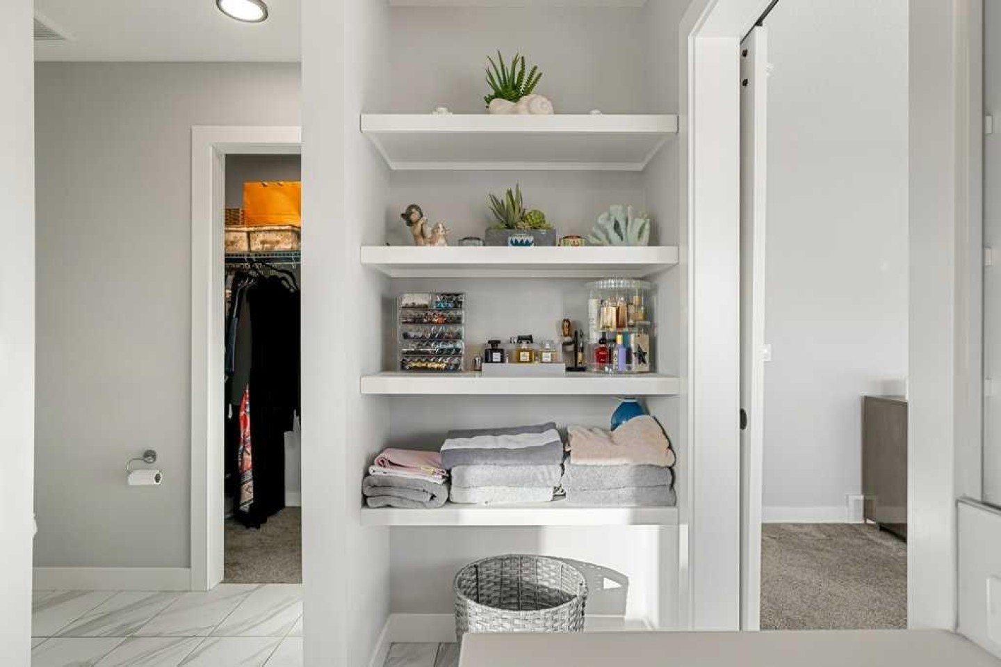 Closet Organizers, Double Vanity, High Ceilings, Kitchen Island, No Animal Home, No Smoking Home, Open Floorplan, Quartz Counters, Storage, Vaulted Ceiling(s), Vinyl Windows, Walk-In Closet(s)