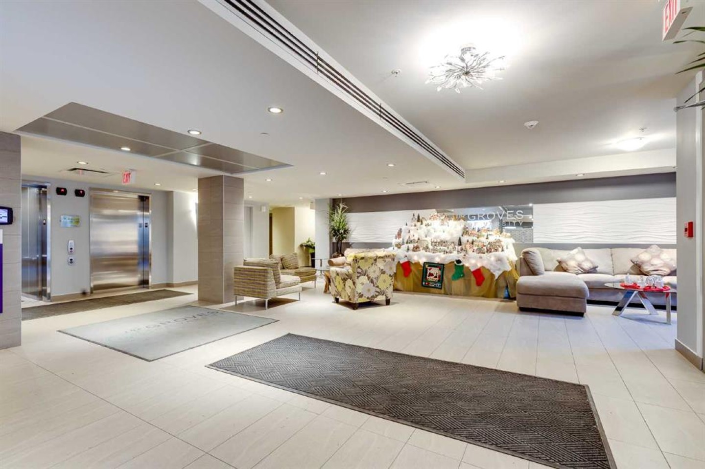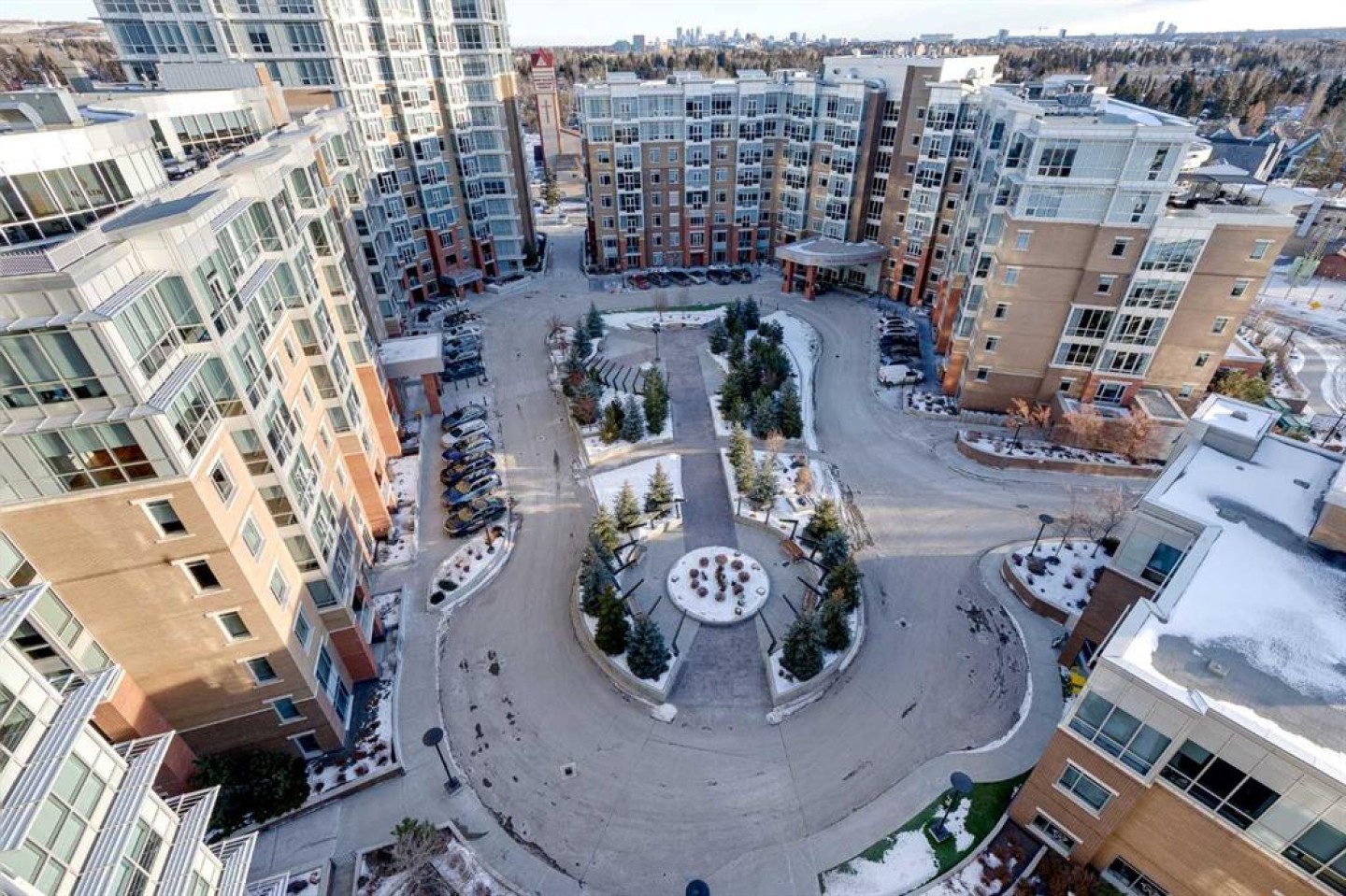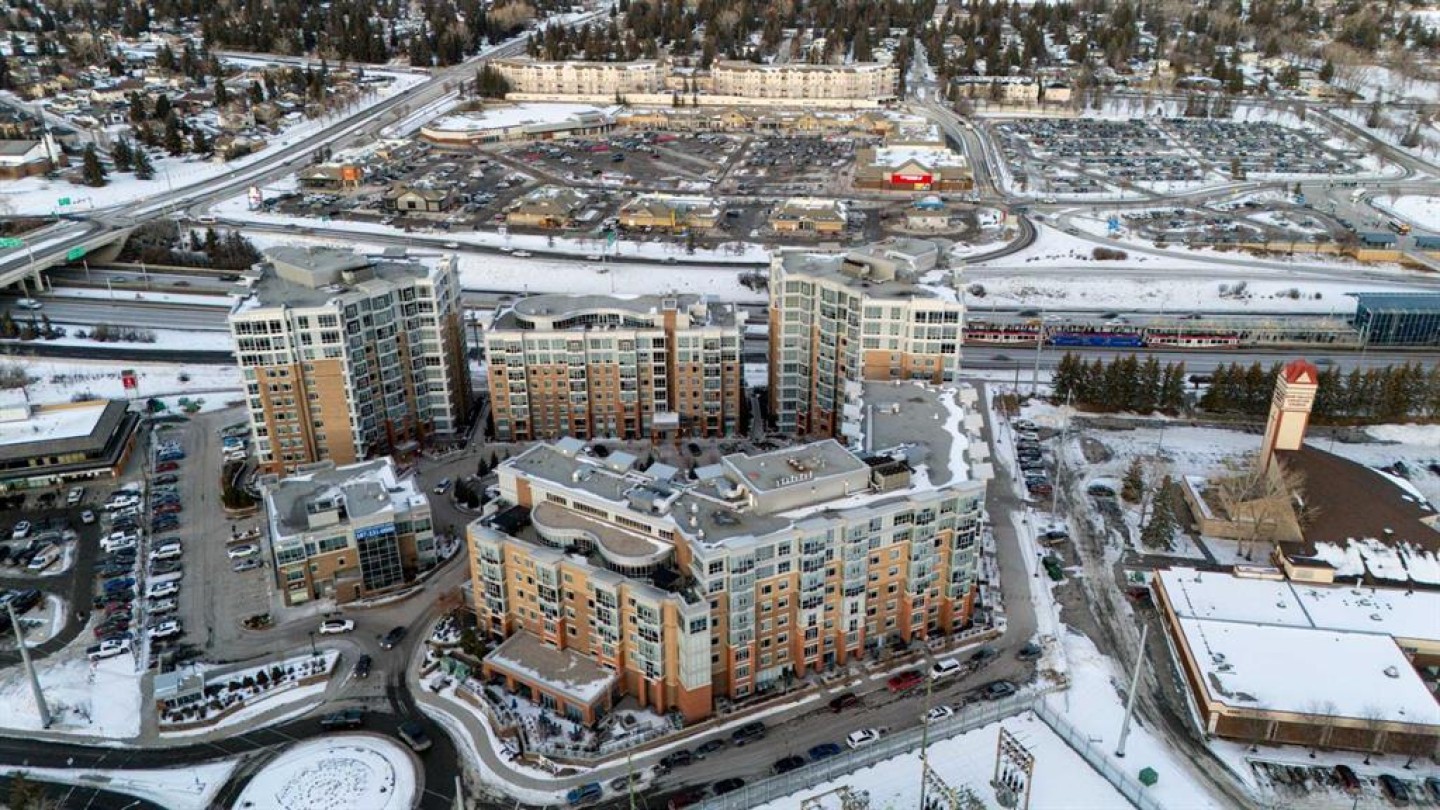 Perched on the 11th floor of the Monterey One building at Groves of Varsity, this thoughtfully designed condominium offers expansive views and a refined living experience in one of Calgary’s most established luxury complexes. Constructed with concrete and steel, the residence provides a quiet and secure setting. With over 1,000 square feet of developed space, the home features two bedrooms and two bathrooms, balancing comfort with functionality. The interior is defined by 10-foot ceilings and full-height windows that draw in natural light and frame open city and mountain outlooks. Hardwood flooring grounds the living and dining areas, creating a cohesive flow throughout the main living space. The living room is welcoming and well proportioned.. Adjacent to it, the modern kitchen combines style and practicality with tile flooring, rich wood cabinetry, quartz countertops, stainless steel appliances, plenty of cupboard space and a breakfast bar that adds casual seating. The dining area opens to a Juliet balcony and offers views toward downtown, making it a pleasant setting for both daily meals and evening gatherings. The primary bedroom is positioned to take full advantage of the scenery, with outlooks that stretch across the city and toward the mountains. It includes a walk-in closet and cork flooring, leading into a five-piece ensuite designed with a spa-like feel. A soaker tub, standalone shower, dual sinks, and quartz countertops complete the space. The second bedroom is equally versatile, currently functioning as a home office with a Murphy bed and integrated desk, allowing it to adapt easily to changing needs. A three-piece bathroom nearby features an oversized glass-enclosed shower and quartz countertop, offering convenience for guests or additional household members. A dedicated laundry room includes a full-size stacked washer and dryer along with extra storage, while air conditioning ensures comfort during warmer months. The home comes with one titled underground heated parking stall and a titled storage locker. Residents of the building have access to a range of shared amenities, including a fitness area, steam rooms, owners’ lounge, and an outdoor rooftop terrace with BBQs. A professional building nearby adds convenience with services such as medical offices, a pharmacy, and cafés. Short-term rentals are not permitted, and pets are welcome with board approval. The location places you steps from the Dalhousie LRT Station and directly across from the shops, dining, and services of Dalhousie Station. Market Mall, Northland Mall, and Crowfoot Crossing are all minutes away, as are major routes including Crowchild Trail, Stoney Trail, and downtown Calgary. The University of Calgary, SAIT, Silver Springs Golf & Country Club, Bowmont Park and its river pathways, Nose Hill Park, Foothills Hospital, and Alberta Children’s Hospital are all within easy reach, making this an ideal setting for both lifestyle and accessibility. Check out the 3D tour and floor plans!