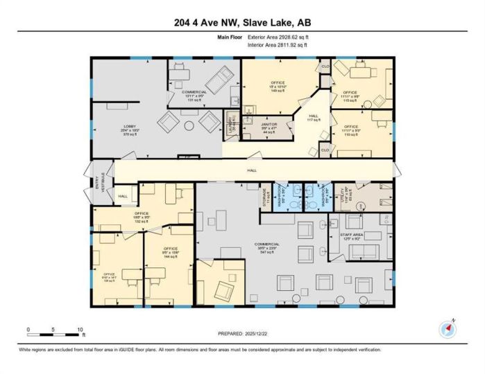 Well-located downtown commercial building offering excellent flexibility for investors or owner-users. This 2,930 sq/ft building is situated on a 6,100 sq/ft C1-zoned lot with ample parking at both the front and rear, surrounded by shops, banks, schools, and key services. Constructed with concrete grade beams and slab, wood-frame structure, concrete block with vinyl clad exterior, and a tar and gravel roof, the property features 200-amp electrical service, high-efficiency gas furnaces replaced in 2018, two A/C units (one replaced in 2021), and several recent interior renovations including flooring and paint. The building is currently configured as three separate units with a layout that allows easy conversion to two units, four units, or a single large space. One unit offers two offices and a reception area, another includes four offices and a staff room and could easily be divided into two separate units, and finally one unit is currently operated as a hair salon with a staff room and a private office. Two units are leased to a single tenant with a common hallway providing access to two renovated washrooms and the mechanical room, while the other is occupied by the seller, who is open to negotiating a lease with a new owner. An excellent opportunity to acquire a flexible, income-producing commercial property in Slave Lake’s core commercial area with established tenants, plenty of nice renovations and strong future upside.