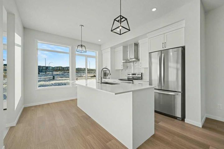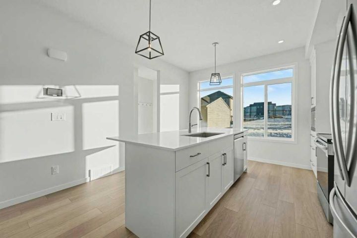 ** WATCH 3D TOUR** Welcome to this stunning, exquisitely crafted detached home in the vibrant community of Livingston, Calgary. From the moment you arrive, you’ll be impressed by the expansive front porch offering beautiful open views perfect for relaxing and enjoying the neighborhood. Step inside to a bright and welcoming main floor featuring a spacious living room filled with natural light from large windows. The open-concept layout seamlessly connects the living area to the modern kitchen, making it ideal for everyday living and entertaining. The kitchen is a true chef’s delight, showcasing fully upgraded appliances including an electric stove, range hood, built-in microwave, dishwasher, and upgraded refrigerator. Sleek countertops, ample cabinetry, and a central island provide both style and functionality. The main floor also offers a generously sized walk-in pantry, thoughtfully designed to provide exceptional storage and organization, keeping the kitchen clutter-free and highly functional, a mudroom, and a 2-piece powder room offering added convenience for family and guests. Upstairs, you’ll find three spacious bedrooms designed for comfort and privacy. The primary bedroom features a walk-in closet and a 3-piece ensuite with a beautifully designed upgraded walk-in standing shower, finished with sleek, contemporary detailing. A full 4-piece bathroom serves the remaining bedrooms, along with a conveniently located laundry room complete with washer and dryer. A standout feature of this home is the separate side entrance leading to a bright basement with oversized window and builder-completed legal suite rough-ins, presenting exceptional potential for a future rental suite or additional living space. This home also features upgraded lighting throughout and modern smart home technology, including smart switches, a smart thermostat, and a Ring doorbell video camera, offering enhanced comfort, convenience, and security. Ideally located in the rapidly growing community of Livingston, just steps from the upcoming pond and close to future schools, parks, shopping, and everyday amenities. Situated in a safe and quiet neighborhood and minutes from the Livingston Community & Recreation Centre, this exceptional home offers outstanding value for families and investors alike. Book your private showing today!