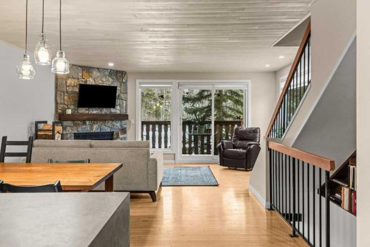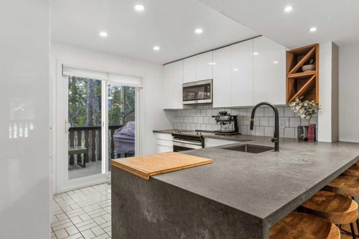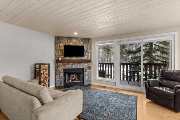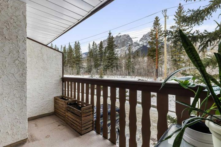 This is a rare opportunity to own a home that works equally well as a vacation retreat or a full time residence in the Whisky Jack complex. Positioned as an end corner unit, it offers a level of privacy, natural light, and mountain views that is rarely found in the community. Rundleview is one of Canmore’s most established and desirable neighbourhoods, originally created to house athletes during the 1988 Winter Olympics and to offer residents a dream location in the heart of the adventure landscape. Thoughtfully set apart from the highway and railway corridor, it is widely regarded as one of the quietest communities in town, with minimal noise pollution. Located at the base of the Canmore Nordic Centre and directly connected to the surrounding wilderness corridor, this home offers immediate access to some of the best hiking, biking, and running trails in the Bow Valley, along with direct access into Kananaskis Provincial Park and the Spray Lakes water reserve. All of this is enjoyed while still being just a scenic fifteen minute walk to downtown Canmore. The Whisky Jack complex is known for its distinctive Austrian alpine charm, an architectural style that feels both timeless and perfectly suited to the Bow Valley setting. Beyond the design, this is a strong and well established community where owners take pride in the neighborhood and its quiet, respectful atmosphere. The complex has recently completed a comprehensive upgrade including all new windows and doors, adding long term value, improved energy efficiency, and peace of mind for owners. The home has been tastefully renovated and is thoughtfully laid out across three levels. The upper floor features three bedrooms and two bathrooms, including a spacious primary suite with its own private patio and ensuite, creating a peaceful retreat surrounded by mountain views. The main level is the heart of the home, offering a stunning great room layout that brings together the kitchen, dining, and living spaces. A cozy wood burning fireplace anchors the living area, while decks on both sides of the home create a seamless connection to the outdoors. Large windows wrap the space, filling it with natural light, spectacular mountain views, and a sense of privacy that is rarely found. A convenient half bath and pantry complete this level. The lower level provides excellent flexibility, serving as an ideal guest space or an illegal, non conforming suite that can help offset mortgage costs. This level includes a kitchen, living area, bedroom, and a three piece bathroom, making it well suited for extended family, guests, or additional income. Corner units in Whisky Jack rarely come to market, and this home stands out for its location, privacy, and connection to both wilderness and town. It is a unique opportunity to own a piece of Canmore’s Olympic legacy in one of its most sought after communities.