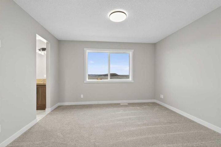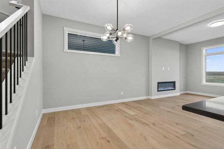 WOW ! A brand new home by Douglas Homes- Master Builder. Located one block from the new park that has been put into Southbow Landing. Thinking you may need a little bit more space ? Why not upgrade to this beautiful attached property- The Canberra ! With a generous almost 1500 worth of square footage, this home is sure to impress. This home provides 3 bedrooms, 2.5 bathrooms, a main floor bedroom or office for a perfect floor plan. The Douglas Homes kitchen comes standard with Quartz countertops on both the main floor kitchen, and the upstairs bathrooms. What an upgrade ! What really sets this home apart is the main floor office, isn't that handy ? As you go upstairs, the large window going up the stairs brings in lots of natural light. It's one of our favourite features of this home. Once upstairs, you will find 3 large bedrooms, and a walk in, full size washer and dryer with room for storage. The upstairs primary bedroom is spacious, and has a walk in closet, and even double sinks in the primary ensuite. This home doesn't even feel like a semi detached property, if you can believe it ! On the way to the basement you will find a side entrance which is perfect for a possible mortgage helper ( with approval from Rocky View County ). This home is ready in about six months and it can be yours this spring, and the best part is you have enough time to choose your palette of colours/finishings. Photos are from prior build & are reflective of fit, finish & included features. Note: Front elevation of home & interior photos are for illustration purposes only. Actual elevation style, interior colours/finishes, & upgrades may be different than shown & the Seller is under no obligation to provide them as such. Directions: Come to the Show Home first located at 115 Southborough Crescent. Show Home hours to view. This home is under construction