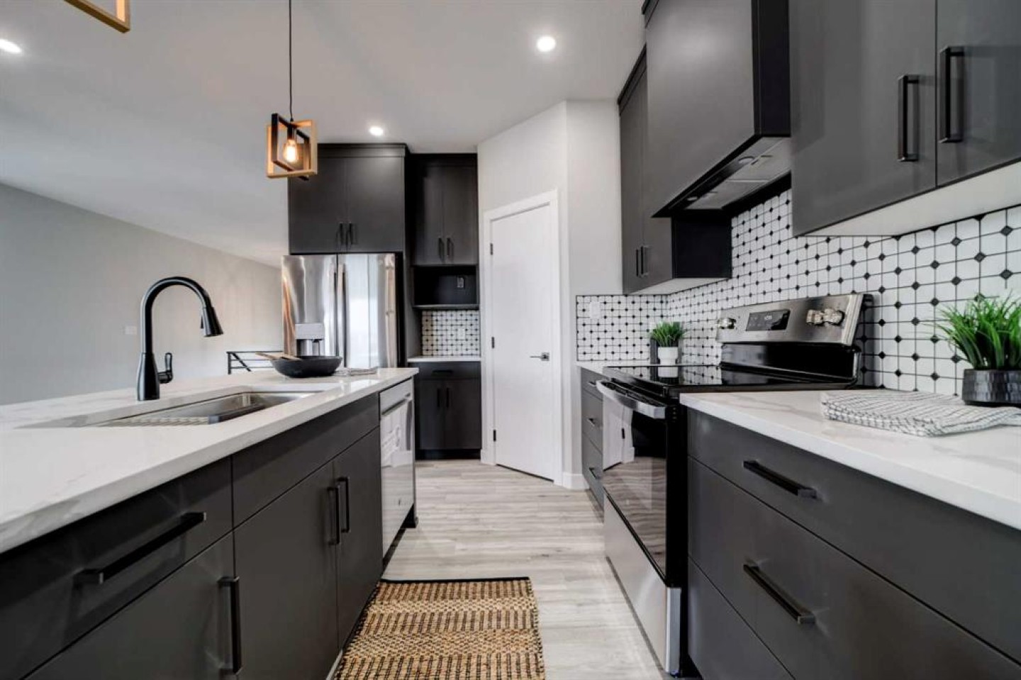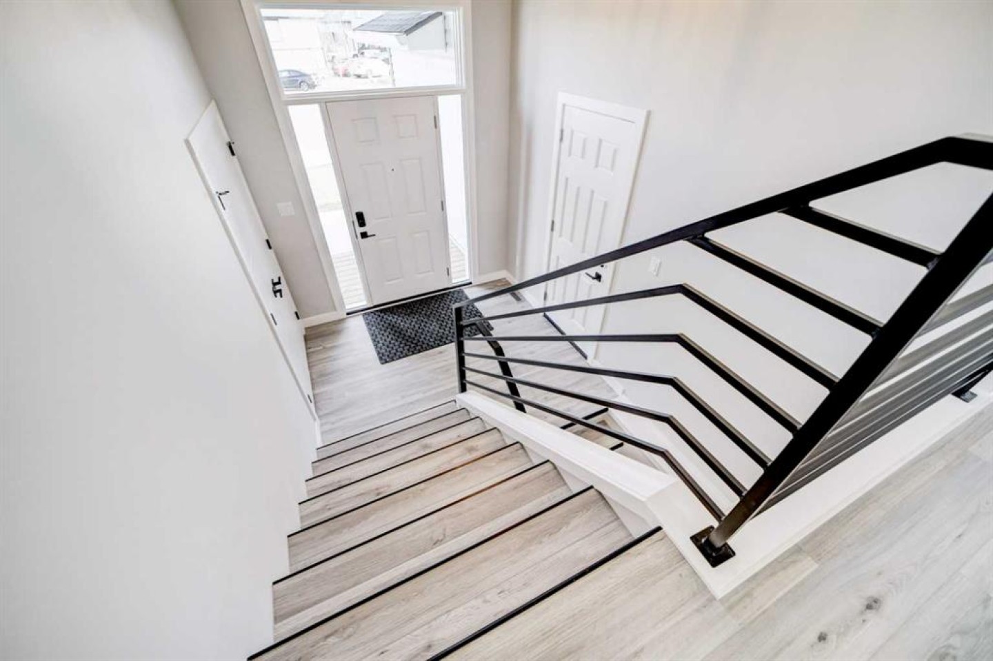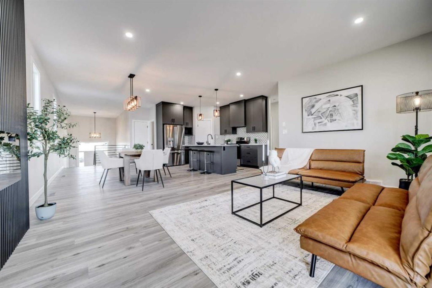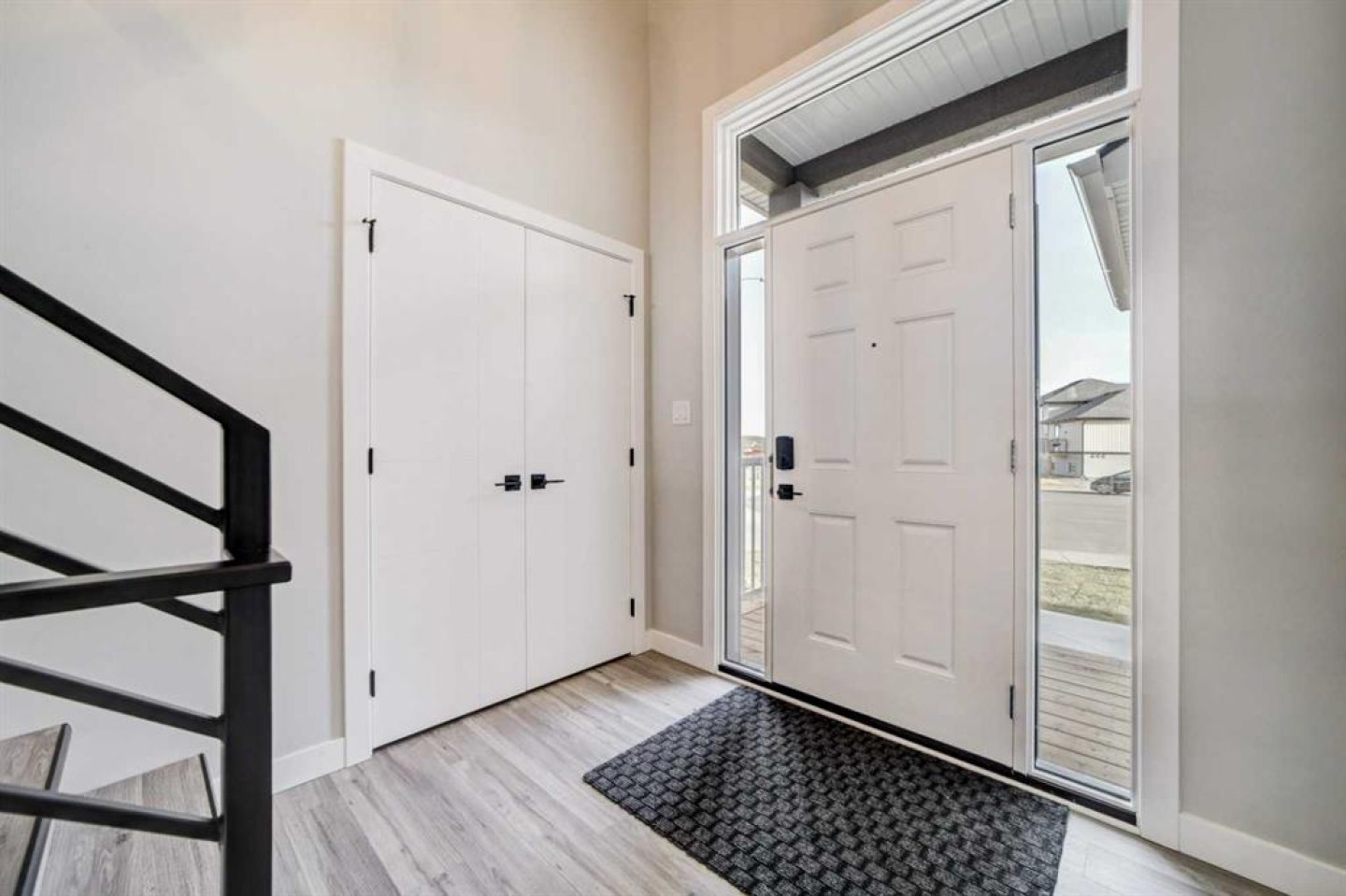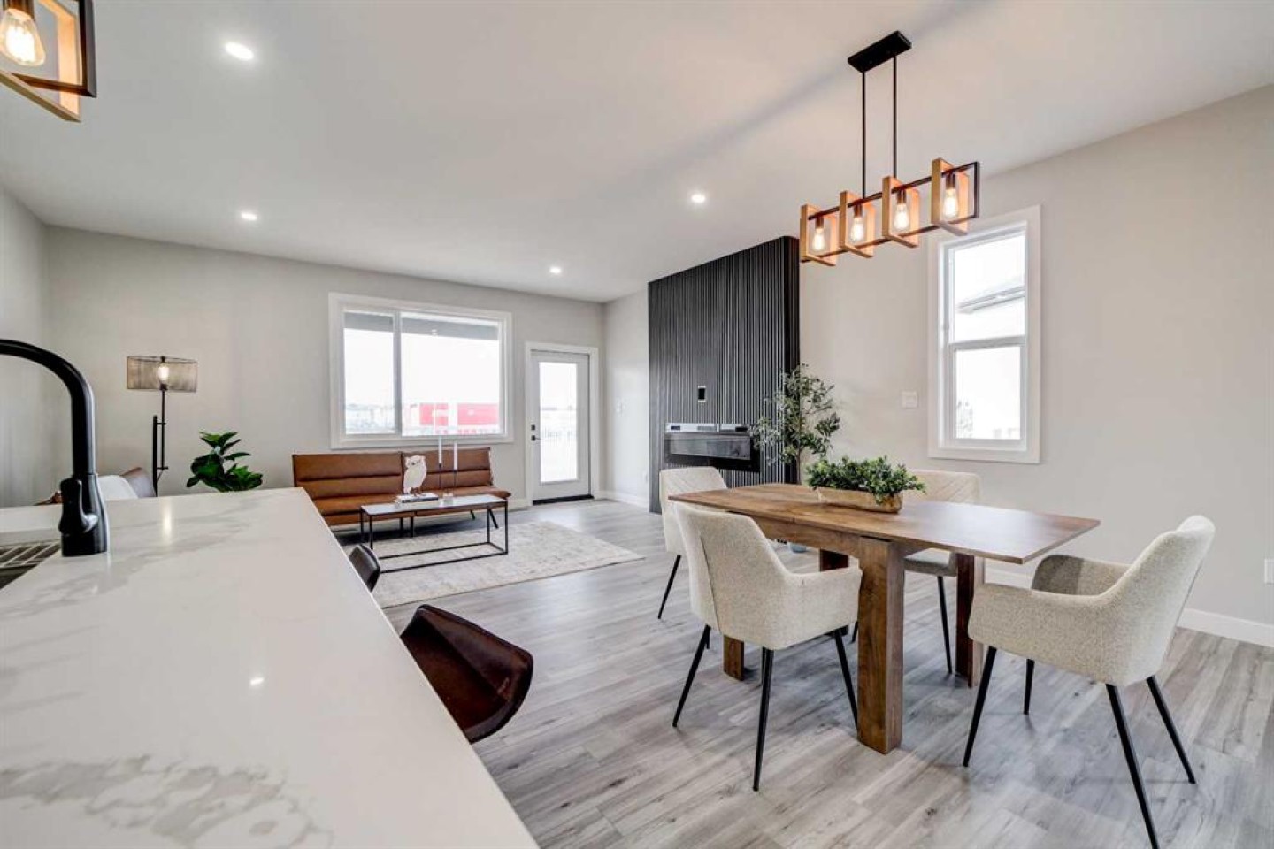 This stunning brand-new, fully developed, walk out bi-level build, is the definition of “turn key GORGEOUS” in a close, right beside a park! Featuring over 2600 square feet of entirely finished space with loads of beautiful upgrades, and designed with real-life functionality in mind. This one offers 5 bedrooms (2 up, 3 down) and 3 bathrooms, with a bright walkout basement that feels like a second main floor. The upper level is warm and stylish, anchored by a beautiful show stopping 72 inch fireplace in the living room, and a covered deck right there for BBQing or just taking in some fresh air, even in the rain or snow. The upgrades in this house include but are not limited to, a kitchen finished with granite countertops and full-height cabinetry that runs right to the ceiling—clean, modern, and timeless. A big central island in this open concept main living space. Energy star appliance package in this energy star rated house, that includes washer, dryer and a gas stove. This one also features main floor laundry. The primary suite located on the main floor is a standout with a large walk-in closet and stunning private ensuite including a gorgeous walk in custom built shower, dual vanity in granite with loads of counter space, and a separate water closet. The additional bedrooms are generously sized throughout, giving you flexibility for kids, guests, office space, or all of the above. Downstairs is where this home really surprises: 9’ ceilings, oversized windows, huge family room, and a wet bar for entertaining, secondary laundry for convenience, and its a walkout! Add instant hot water on demand, and a front attached double garage, plumbed for heat that features a huge upper open space for a mezzanine or a lift- and you’ve got a home that hits hard on value at its list price. If you’ve been waiting for a move-in-ready new build that checks every box, in a close, next to a park, for under $600K- this is the one. Call your agent today and check it out before you miss it!