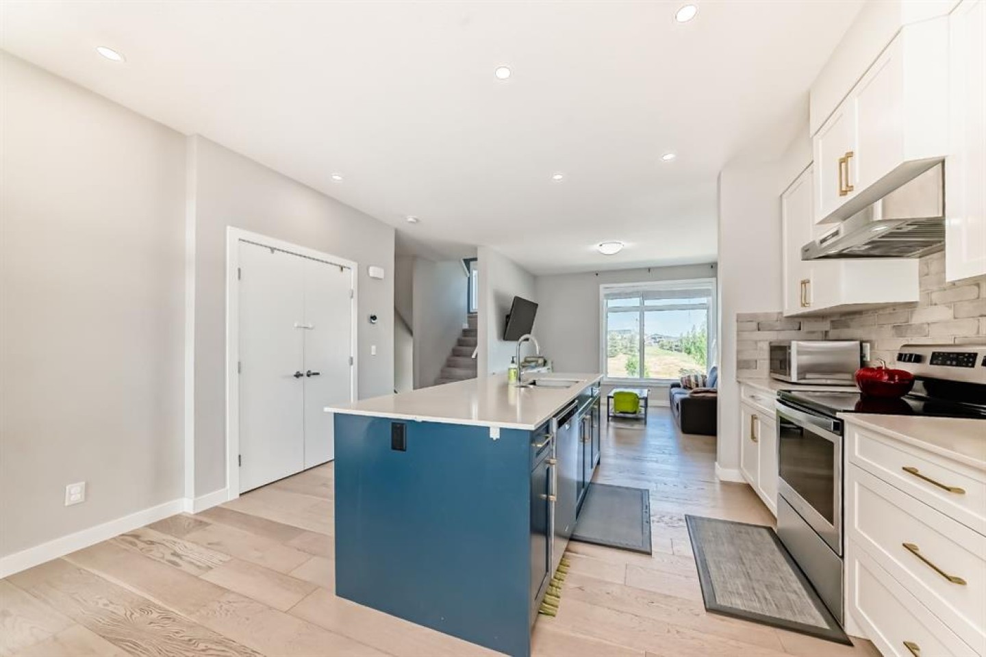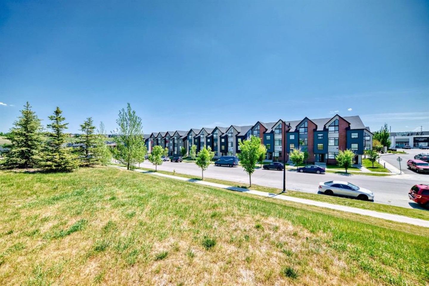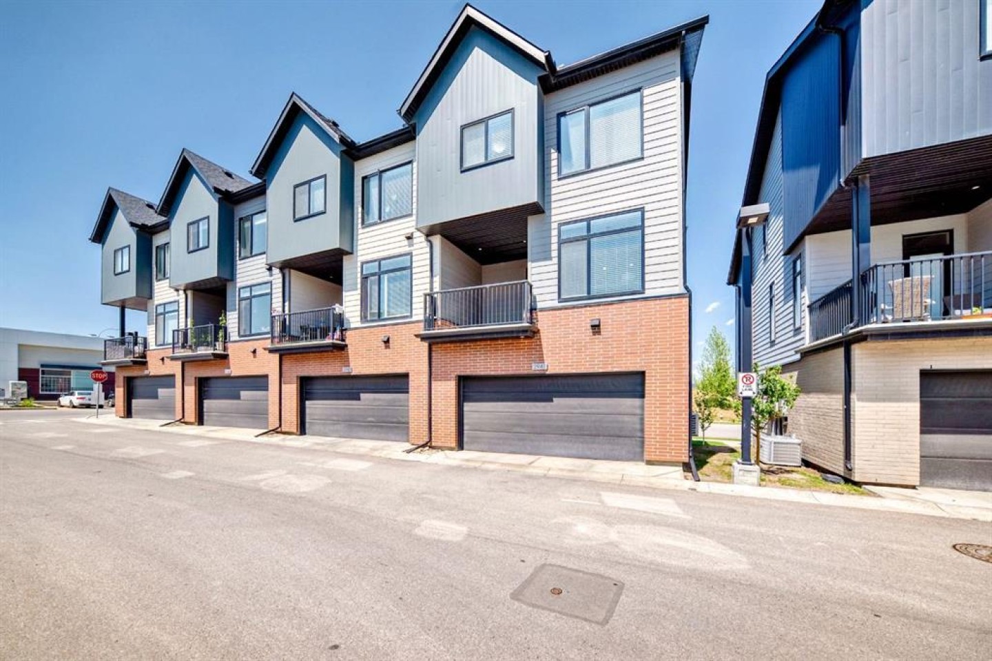 Former show home, the most stunning Townhouse you can find in the market WITH VIEW!! — An end-unit that fronts a green space!! This 3-bedroom, 2.5-bathroom home offers 1,782 sq ft of refined living space across three levels, and is nestled on a premium corner unit with no attached neighbor to the east, ensuring added privacy and natural light due to no common walls shared on that side. From the moment you step in, you’ll notice the superior quality and care that went into this property. The bright and airy open-concept main floor is perfect for modern living, with oversized windows, high ceilings, and upgraded engineered hardwood flooring. The gourmet kitchen is a true showstopper, featuring quartz countertops, stainless steel appliances, full-height cabinets, a stylish backsplash, and a large island with eating bar — ideal for both casual meals and entertaining guests. The upper level offers a relaxing retreat, with a vaulted-ceiling primary bedroom that includes custom windows, a walk-through closet, and a spa-inspired ensuite with a double vanity and luxurious quartz finishes. Two additional spacious bedrooms, a second full bathroom, and convenient upper-floor laundry make this a perfect layout for families or professionals working from home. On the lower level, a fully finished flex room — use it as a home office, gym, media room, or guest space. Additional highlights include CENTRAL AIR CONDITIONING, an oversized HEATED double garage, and a built-in EV CHARGING STATION, making this home both comfortable and future-ready. A back balcony with south exposure offers the perfect outdoor space for BBQs, and morning coffee. The roof of the entire complex was recently replaced in 2025, offering peace of mind for years to come. This home is part of a well-maintained and professionally managed complex with low condo fees. Located in the heart of sought-after Sage Hill, you’re just minutes from shopping, restaurants, parks, pathways, schools, and transit — everything you need for a convenient and connected lifestyle. Whether you're a young family, like to seek a modern lifestyle, or an investor looking for an upgraded turnkey property in a vibrant NW community, this one checks all the boxes. Don’t miss your chance to call this former SHOWHOME your next home — book your private showing today!