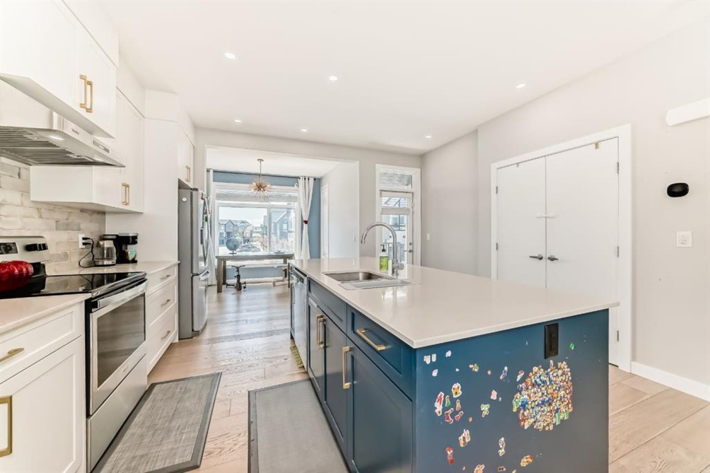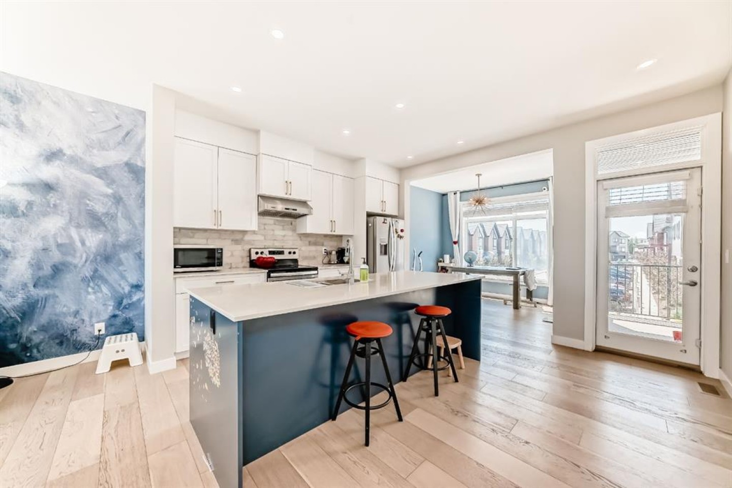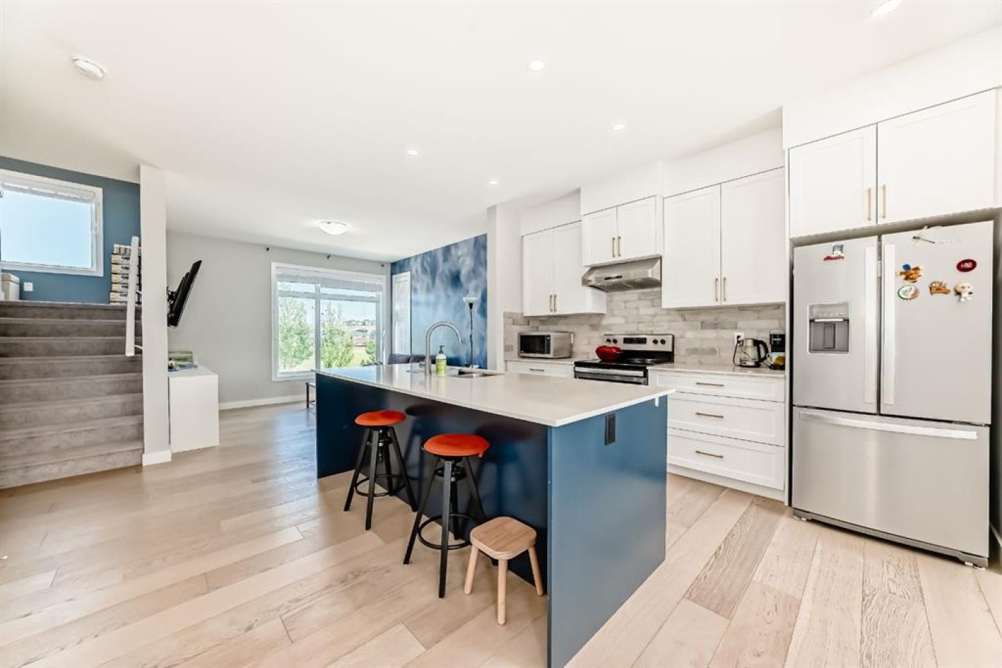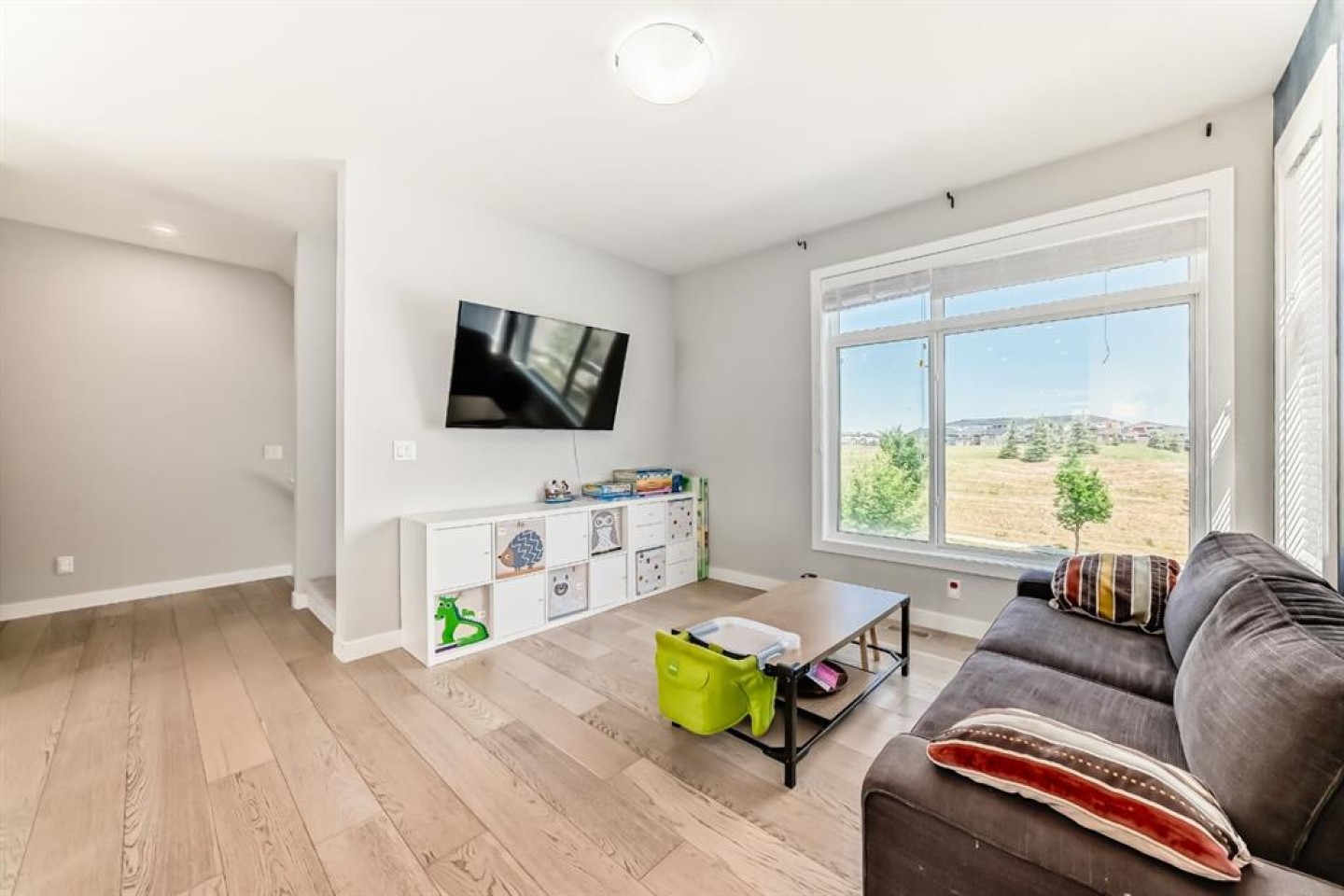 Former show home, the most stunning Townhouse you can find in the market WITH VIEW!! — An end-unit that fronts a green space!! This 3-bedroom, 2.5-bathroom home offers 1,782 sq ft of refined living space across three levels, and is nestled on a premium corner unit with no attached neighbor to the east, ensuring added privacy and natural light due to no common walls shared on that side. From the moment you step in, you’ll notice the superior quality and care that went into this property. The bright and airy open-concept main floor is perfect for modern living, with oversized windows, high ceilings, and upgraded engineered hardwood flooring. The gourmet kitchen is a true showstopper, featuring quartz countertops, stainless steel appliances, full-height cabinets, a stylish backsplash, and a large island with eating bar — ideal for both casual meals and entertaining guests. The upper level offers a relaxing retreat, with a vaulted-ceiling primary bedroom that includes custom windows, a walk-through closet, and a spa-inspired ensuite with a double vanity and luxurious quartz finishes. Two additional spacious bedrooms, a second full bathroom, and convenient upper-floor laundry make this a perfect layout for families or professionals working from home. On the lower level, a fully finished flex room — use it as a home office, gym, media room, or guest space. Additional highlights include CENTRAL AIR CONDITIONING, an oversized HEATED double garage, and a built-in EV CHARGING STATION, making this home both comfortable and future-ready. A back balcony with south exposure offers the perfect outdoor space for BBQs, and morning coffee. The roof of the entire complex was recently replaced in 2025, offering peace of mind for years to come. This home is part of a well-maintained and professionally managed complex with low condo fees. Located in the heart of sought-after Sage Hill, you’re just minutes from shopping, restaurants, parks, pathways, schools, and transit — everything you need for a convenient and connected lifestyle. Whether you're a young family, like to seek a modern lifestyle, or an investor looking for an upgraded turnkey property in a vibrant NW community, this one checks all the boxes. Don’t miss your chance to call this former SHOWHOME your next home — book your private showing today!