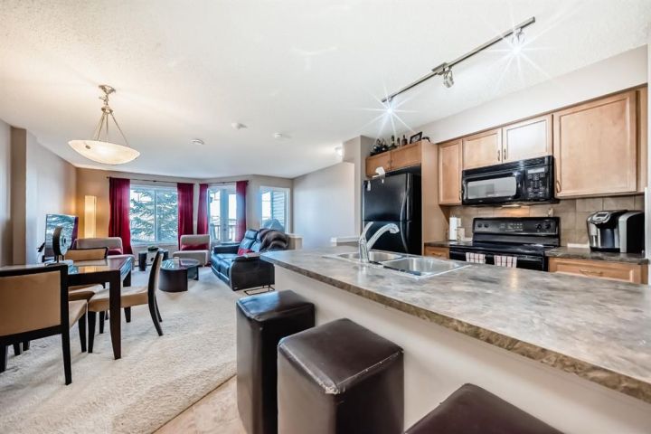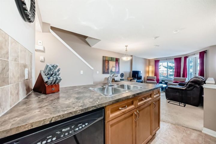 "" OPEN HOUSE: SUNDAY, JANUARY 4, 2:00 - 4:00 PM "". McKenzie Towne former community of the year. Beautifully maintained, move in ready two bedroom two storey townhome. Beautiful open main floor plan with spacious living room, spacious kitchen with peninsula, eating bar and a large walk in pantry. Main floor guest bathroom, extra storage under the stairs. Great upper bedroom level including comfortable size primary bedroom, second bedroom (or den) with 2 pce ensuite, upper laundry space. Two decks. Titled underground parking stall plus titled storage locker Great location walking distance to restaurants, groceries, pub, coffee shop, walking paths of Inverness Pond.