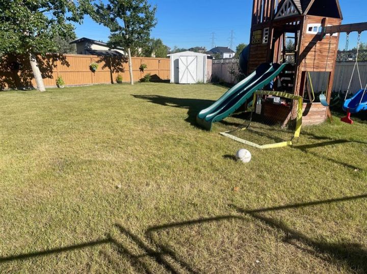 Welcome to 58 Lakeview Bay, a fully finished and stunning property nestled in one of Chestermere’s most desirable lakefront communities. This beautiful home offers approximately 1,960 sq. ft. of elegant living space, perfectly blending comfort and style. Situated on a large pie-shaped lot with ample RV/boat parking, this residence is ideal for families and entertainers alike. The main floor features an upgraded kitchen equipped with premium stainless-steel appliances, an electric stove, chimney hood fan, French door fridge with waterline, wine cooler, quartz countertops, a stylish backsplash, full-height cabinets, pantry, and an island/bar for casual dining. Additional highlights include a convenient powder room with cabinetry, a dining room, laundry area, family room, and a living room with an inviting gas fireplace—perfect for relaxing or hosting guests. Large windows and exterior doors flood the home with natural light, creating a bright and airy ambiance, further enhanced by upgraded light fixtures, pot lights, and an orange peel ceiling. Luxurious vinyl plank flooring extends from the stairs throughout the upper level. The spacious primary bedroom features an upgraded four-piece ensuite with a walk-in closet, quartz countertop vanity, large mirror with storage, beautiful tilework, and a jetted tub for a private retreat. Two additional large bedrooms with closets, a generous storage/linen closet, an upgraded three-piece bathroom, and a versatile bonus room—ideal as a fourth bedroom or home office—complete the upstairs. The developed basement offers a large living area with plush carpeting, a fourth bedroom, another three-piece bathroom, and a spacious mechanical/storage room. Outside, enjoy a double attached garage with an extended driveway, a large wood deck with a newly installed gazebo, a composite deck with a jacuzzi and glass railing, a huge RV/boat parking area, and an expansive pie lot featuring a playground, fire pit and shed. This exceptional home is within walking distance to the golf course and Chestermere Lake, and just minutes from East Hills shopping centre, grocery stores, restaurants, cafes, schools, police, and fire station. With easy access to major routes like 16 Avenue and 17 Avenue, this centrally located property offers both tranquility and convenience. Whether you’re seeking a serene retreat or a place to entertain, 58 Lakeview Bay delivers an outstanding lifestyle opportunity.