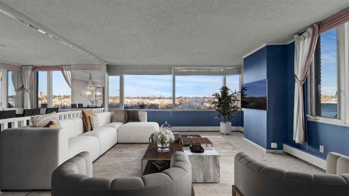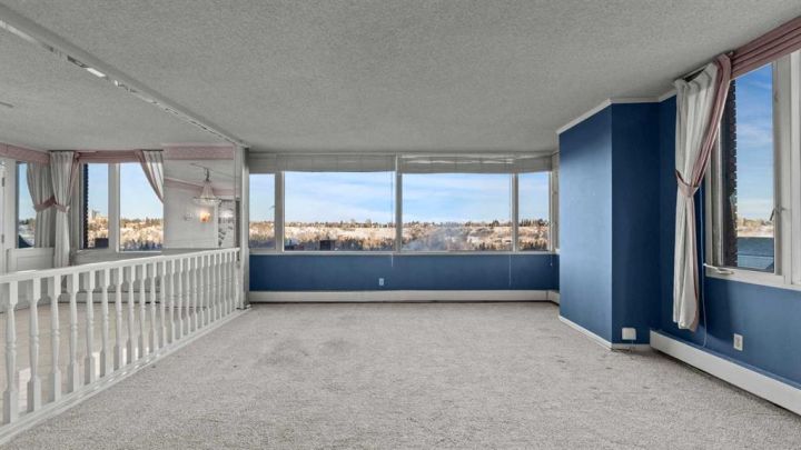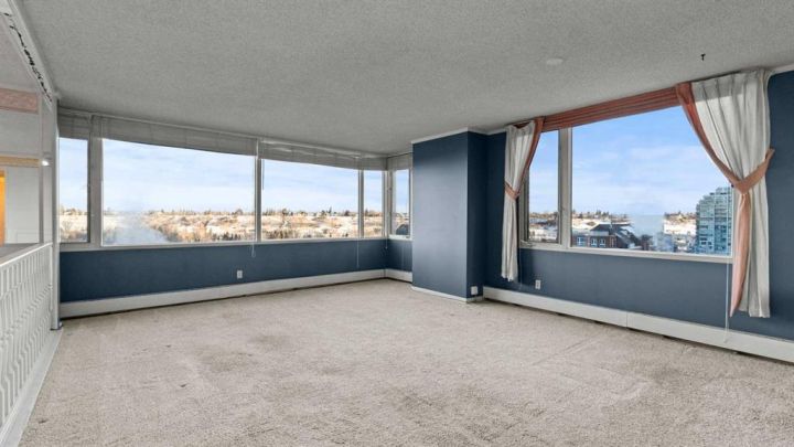 Experience refined urban living at EAU CLAIRE ESTATES, one of Calgary’s most prestigious luxury addresses. This exclusive, impeccably maintained building offers an ELEVATED LIFESTYLE with 24-hour concierge service, on-site management, a beautifully RENOVATED LOBBY, and lush, landscaped courtyards. Residents enjoy premium amenities including a private outdoor PUTTING GREEN, fully equipped FITNESS CENTRE, INDOOR SWIMMING pool, hot tub with change rooms, secure bike storage, and the rare convenience of an underground CAR WASH bay. With only two residences per floor, privacy and tranquility are paramount. This expansive 1,756 SQ.FT. two-bedroom, two-bathroom residence is perched on the 10th floor and showcases sweeping, UNOBSTRUCTED VIEWS through wall-to-wall windows—an outlook you’ll never grow tired of. The home offers a versatile, open layout and presents a fantastic opportunity to personalize the space and create a custom luxury retreat tailored to your style. Perfectly positioned just steps from the BOW RIVER, Prince’s Island Park, and Calgary’s extensive river pathway system, this location seamlessly blends nature with downtown convenience. Enjoy easy access to shopping, the Plus-15 network, and a short stroll to the iconic Peace Bridge, connecting you to Kensington’s vibrant cafés, boutiques, and dining scene. A rare opportunity to design your dream home in one of Calgary’s most sought-after luxury buildings — this is Eau Claire living at its finest.