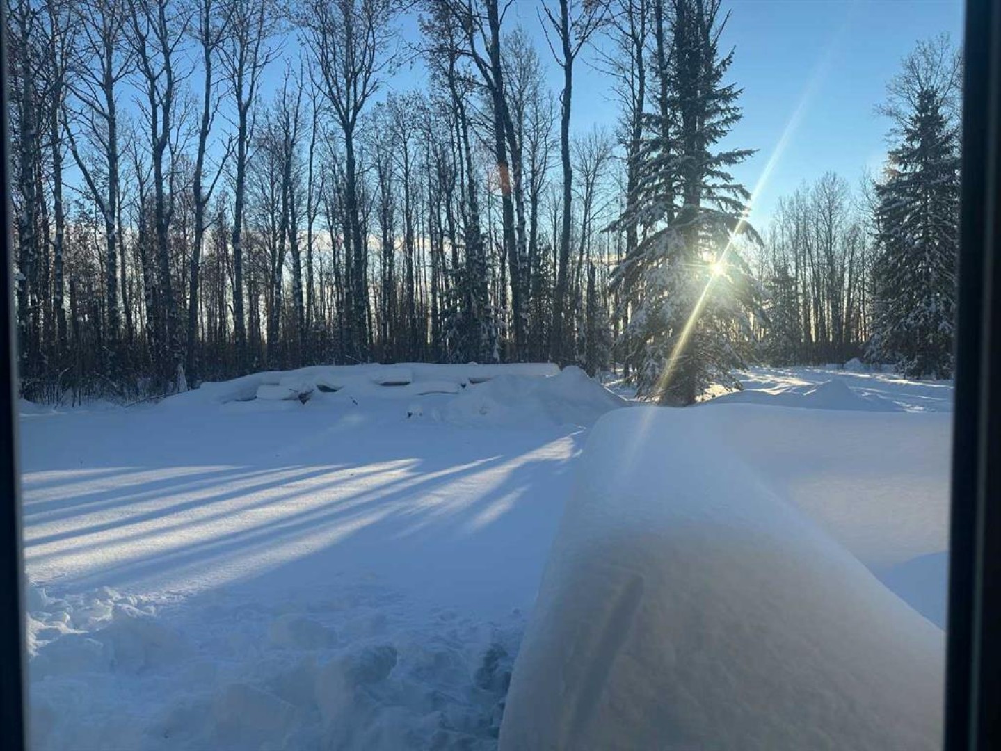 Discover the serenity of country & wooded living in this appealing 3-bedroom, 2-bathroom home on 33.09 acres. The 1,216-square-foot interior offers a bright and airy atmosphere, highlighted by vaulted ceilings and an open-concept kitchen with a useful central island. Designed for modern convenience, the home features carpet-free flooring throughout and a second bedroom that includes its own spacious walk-in closet. The real star is the land: 25+ /- acres of mature forest right at your doorstep, and property is also located within walking distance of the beautiful ‘Wapiti River’. With newer shingles and a handy storage shed already in place, this property is move-in ready and waiting for your personal touch. There is also a large deck to sit and relax on and enjoy the peace and quiet of your private paradise and ample parking for you & your guests on gravel area near the home with gravel driveway leading in. Lawn grass has been seeded near the home and will fill in once the warm spring days come upon us again. Noteworthy updates including newer shingles to ensure peace of mind, while the CR-5 zoning provides a variety of possibilities for the land’s use including minor agricultural pursuits, home-based businesses and limited livestock with the cleared, 6-7 acres of fenced pasture. Contact a REALTOR® today for more information or to view!