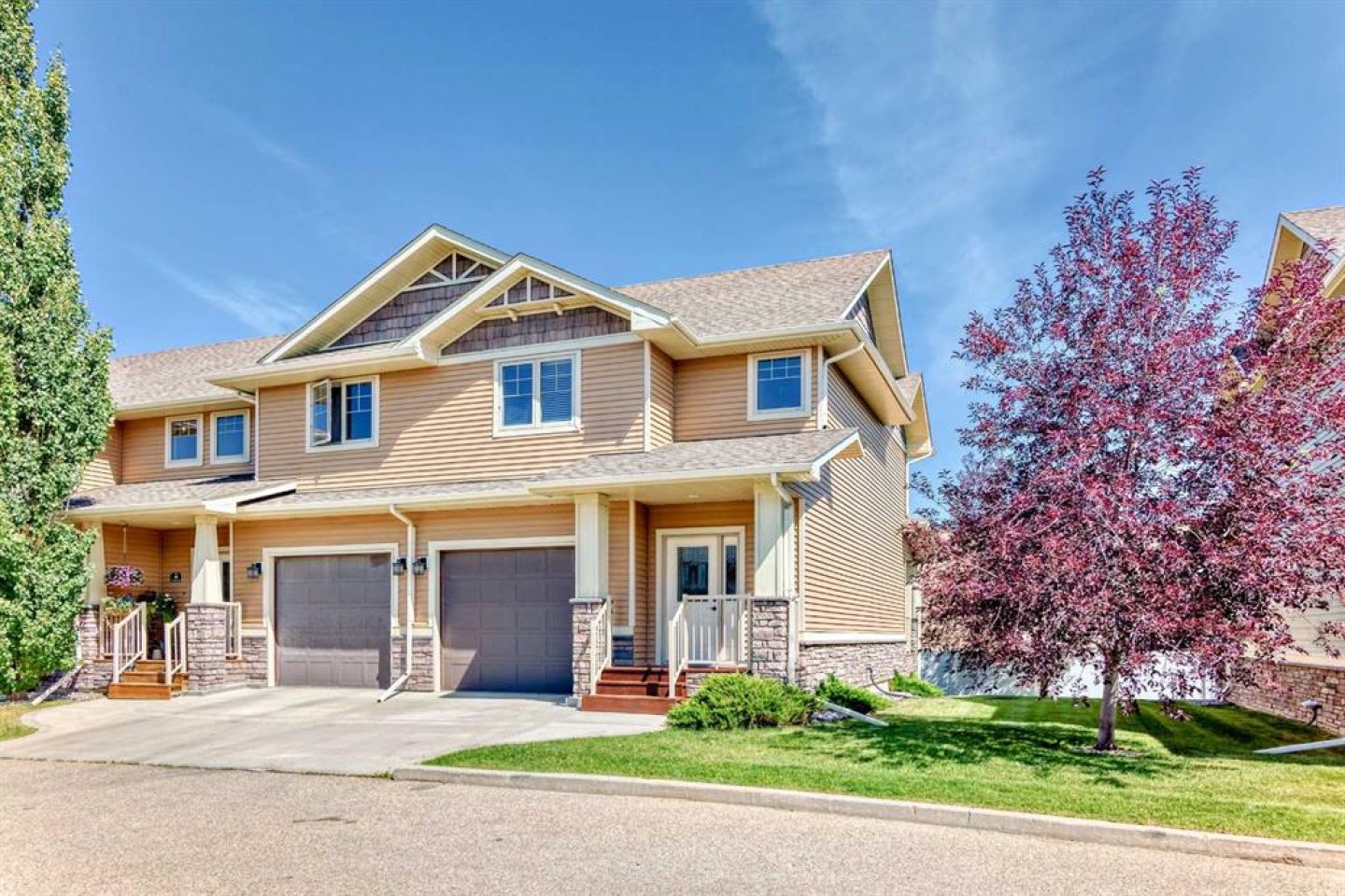 Welcome to this beautifully maintained end-unit townhouse in the lake community of Sylvan Lake, offering an ideal blend of comfort, functionality, and lifestyle. With 3 bedrooms, 2.5 bathrooms, an attached single garage, and a covered rear deck, this move-in-ready home is a fantastic opportunity for first-time buyers or savvy investors. The main floor features a bright, open-concept layout with durable laminate flooring, a spacious living area, and a well-designed kitchen that flows seamlessly into the dining space—perfect for everyday living or entertaining. Upstairs, you’ll find three generously sized bedrooms, including a primary suite with a walk-in closet and private 4-piece ensuite. Recent updates include fresh paint and brand-new carpet throughout, creating a clean, neutral palette ready for your personal touch. The unfinished basement offers excellent potential for future development, adding long-term value and flexibility. As an end unit, this home benefits from extra natural light and added privacy, along with a covered rear deck ideal for relaxing or BBQing year-round. All appliances are included, even the washer and dryer—just move in or rent out with ease. Located in Sylvan Lake, enjoy year-round recreation, beaches, walking paths, and amenities—all while owning an affordable, low-maintenance home. Whether you’re entering the market or expanding your investment portfolio, this property is a must-see.