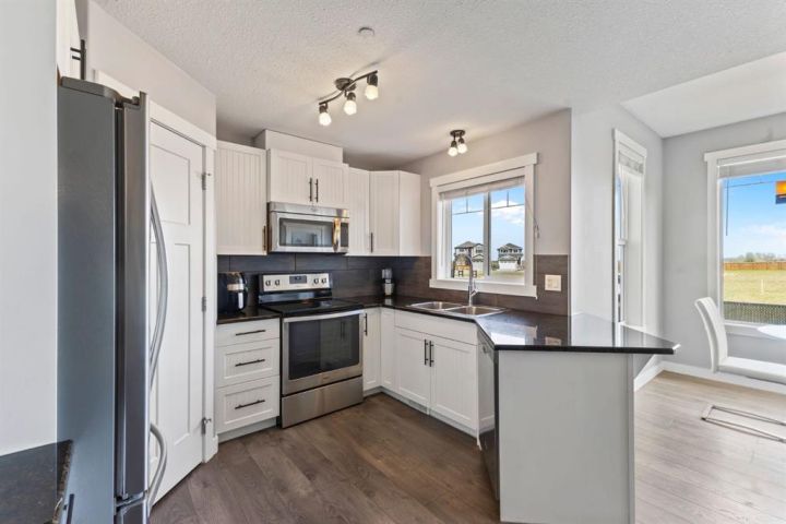 Welcome to this wonderful two-storey home located in the heart of the highly sought-after, family-friendly community of Lakewood. Designed with modern elegance and comfort in mind, this beautiful home features stylish contemporary décor and a bright, open-concept layout perfect for both daily living and entertaining. Step into the main floor and be greeted by a gleaming high ceilings. The white chef’s kitchen complete with granite countertops, ample cabinetry, and stainless steel appliances. Natural light floods the space through large windows, creating a warm and inviting atmosphere throughout the dining area and spacious living room, where a cozy gas fireplace serves as the perfect focal point. Upstairs, you’ll find three generously sized bedrooms, including a luxurious owner’s suite featuring a private 3-piece ensuite and ample closet space. The upper level provides a peaceful retreat for the whole family. The fully finished basement adds even more functional living space, offering a large recreation room ideal for movie nights, and a modern 3-piece bathroom, Outside, the private backyard is a true oasis, featuring low-maintenance landscaping and plenty of space for children and pets to play. Beautiful stonework which continues to a centre patio area of the backyard, is a focal feature of this outdoor space. Whether you’re hosting summer BBQs or enjoying quiet evenings under the stars, this outdoor area is ready for it all.