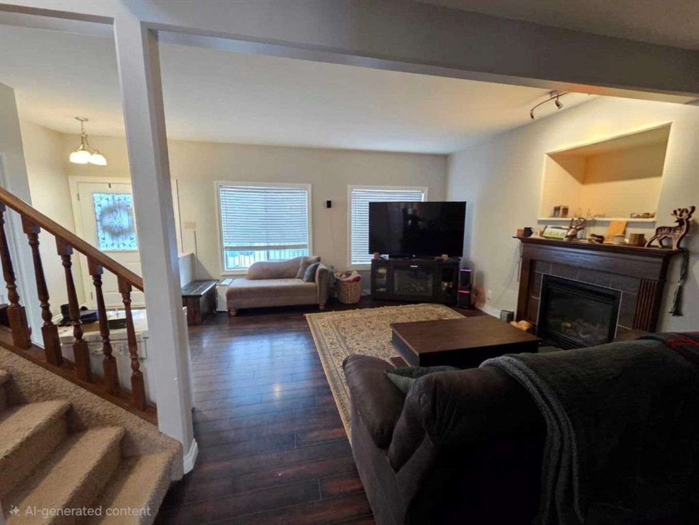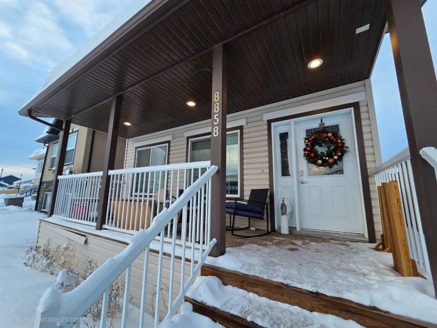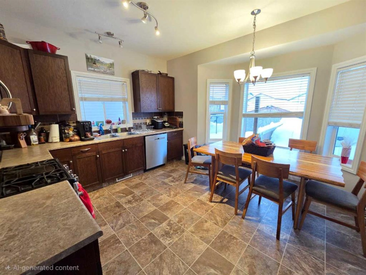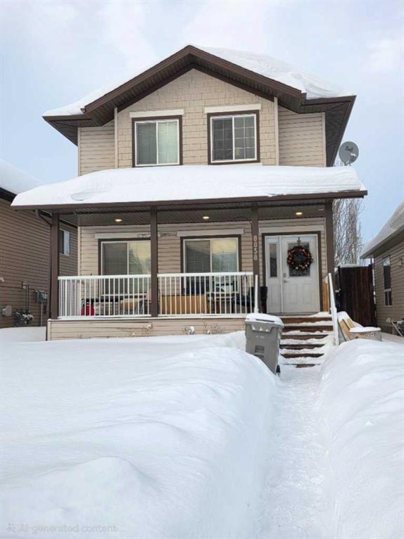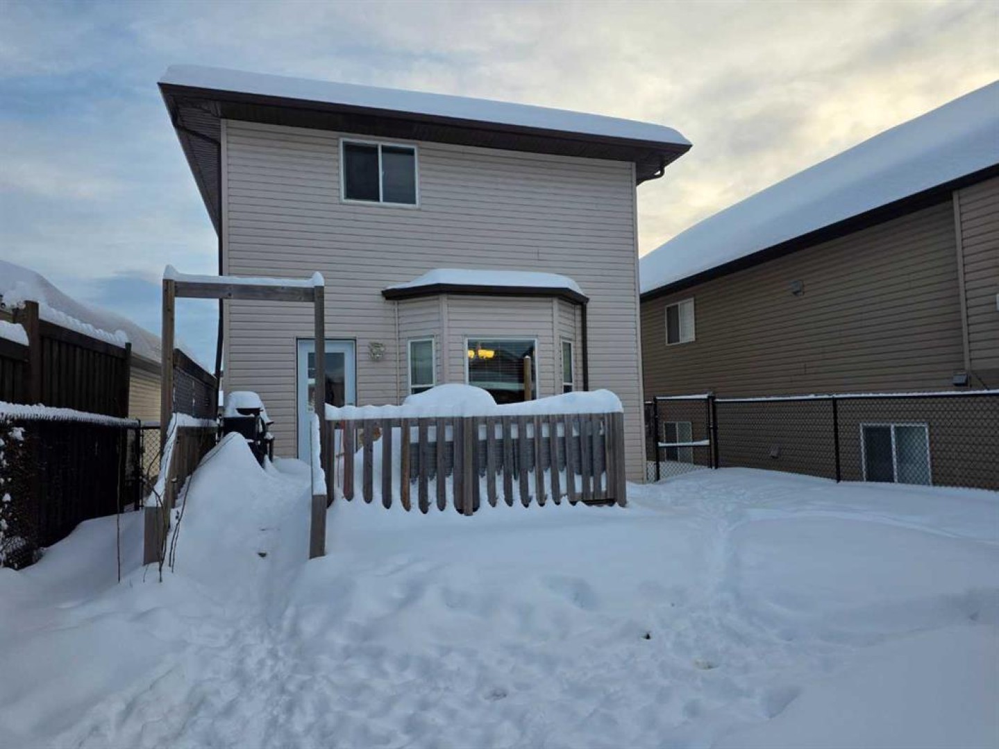 Welcome to this modern 1,447 sq. ft. two-storey home located in desirable Countryside North. The spacious front living room features 9-foot ceilings and a cozy gas fireplace, creating a bright and inviting atmosphere. The kitchen is both stylish and functional, showcasing Cappuccino Oak cabinetry. Upstairs offers three well-sized bedrooms and a full bathroom, including a generous primary bedroom complete with a walk-in closet and full ensuite. The basement is open and ready for your future development ideas. Rear alley access provides convenient double parking. Walking distance to Mother Theresa school.
