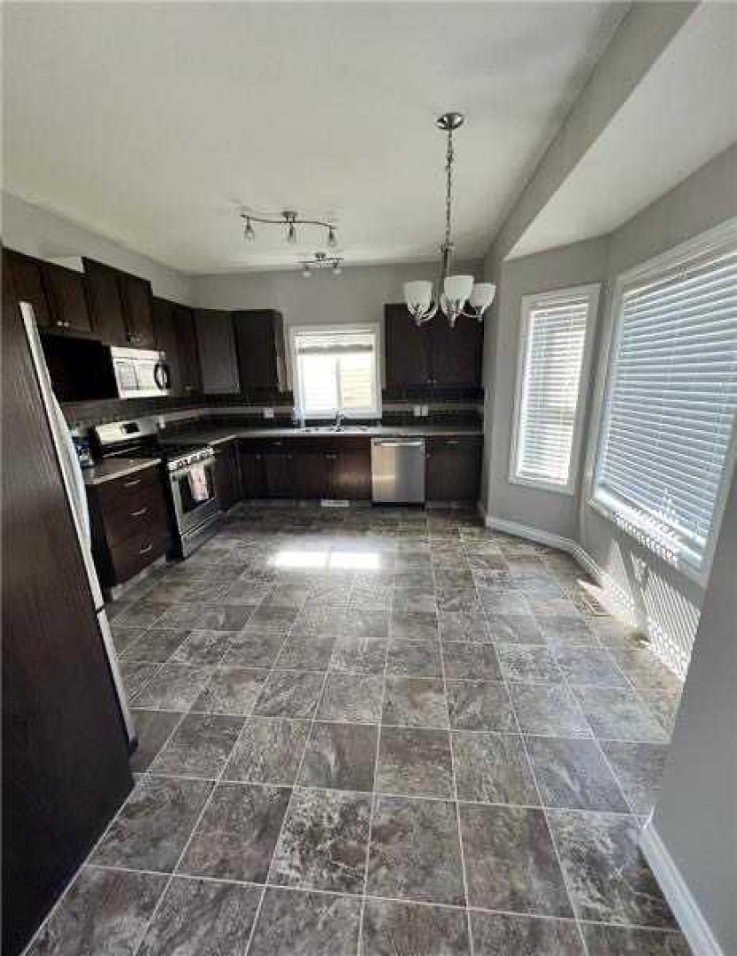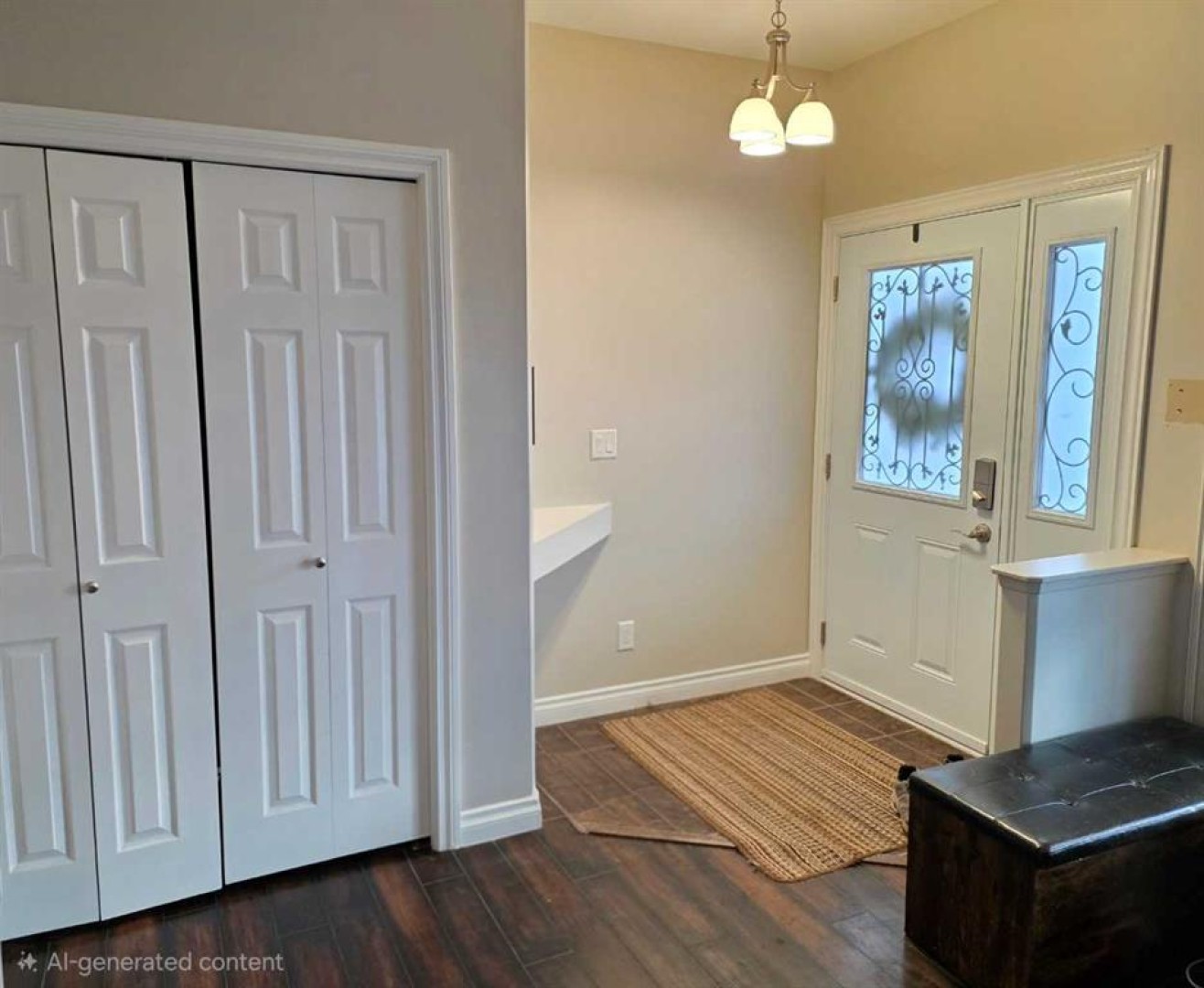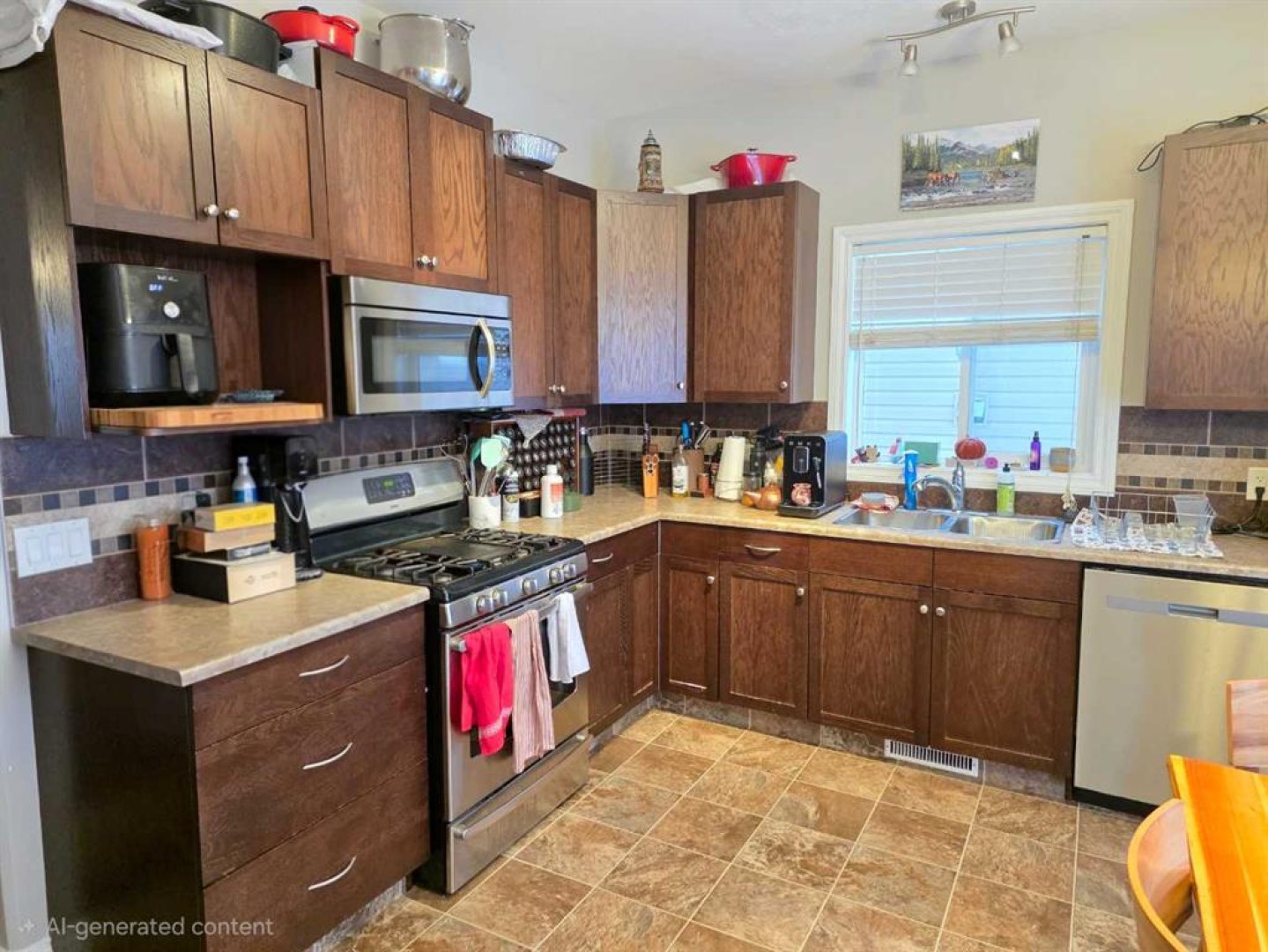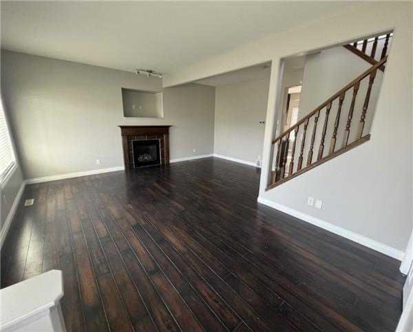 Welcome to this modern 1,447 sq. ft. two-storey home located in desirable Countryside North. The spacious front living room features 9-foot ceilings and a cozy gas fireplace, creating a bright and inviting atmosphere. The kitchen is both stylish and functional, showcasing Cappuccino Oak cabinetry. Upstairs offers three well-sized bedrooms and a full bathroom, including a generous primary bedroom complete with a walk-in closet and full ensuite. The basement is open and ready for your future development ideas. Rear alley access provides convenient double parking. Walking distance to Mother Theresa school.